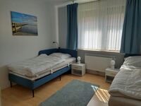 Die Erdgeschoss-Wohnung verfügt über ca. 72 qm Wohn- und Nutzfläche mit 2 Schlafzimmern, davon eines mit Doppelbett das andere mit zwei Einzelbetten, ein Wohn-/Esszimmer mit integrierter, voll ausgestatteter Küche, ein Bad mit Dusche und eignet sich für bis zu 4 Personen.