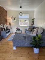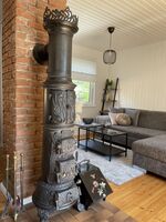 Das Erdgeschoss verfügt über ein Schlafzimmer (geeignet für 2 Personen) mit einem Boxspringbett, einem Wohnzimmer mit einem Wohn-Essbereich, wo es eine Schlafcouch gibt. Im Zentrum des gemütlichen Wohnzimmers steht ein antiker Stahlofen, der im Herbst und Winter wohlige Wärme und Atmosphäre spendet. Sie können sich in eine warme Decke gehüllt auf der Terrasse am Feuerkorb relaxen oder das kuschelige Feuer des gusseisernen Kanonenofens genießen.