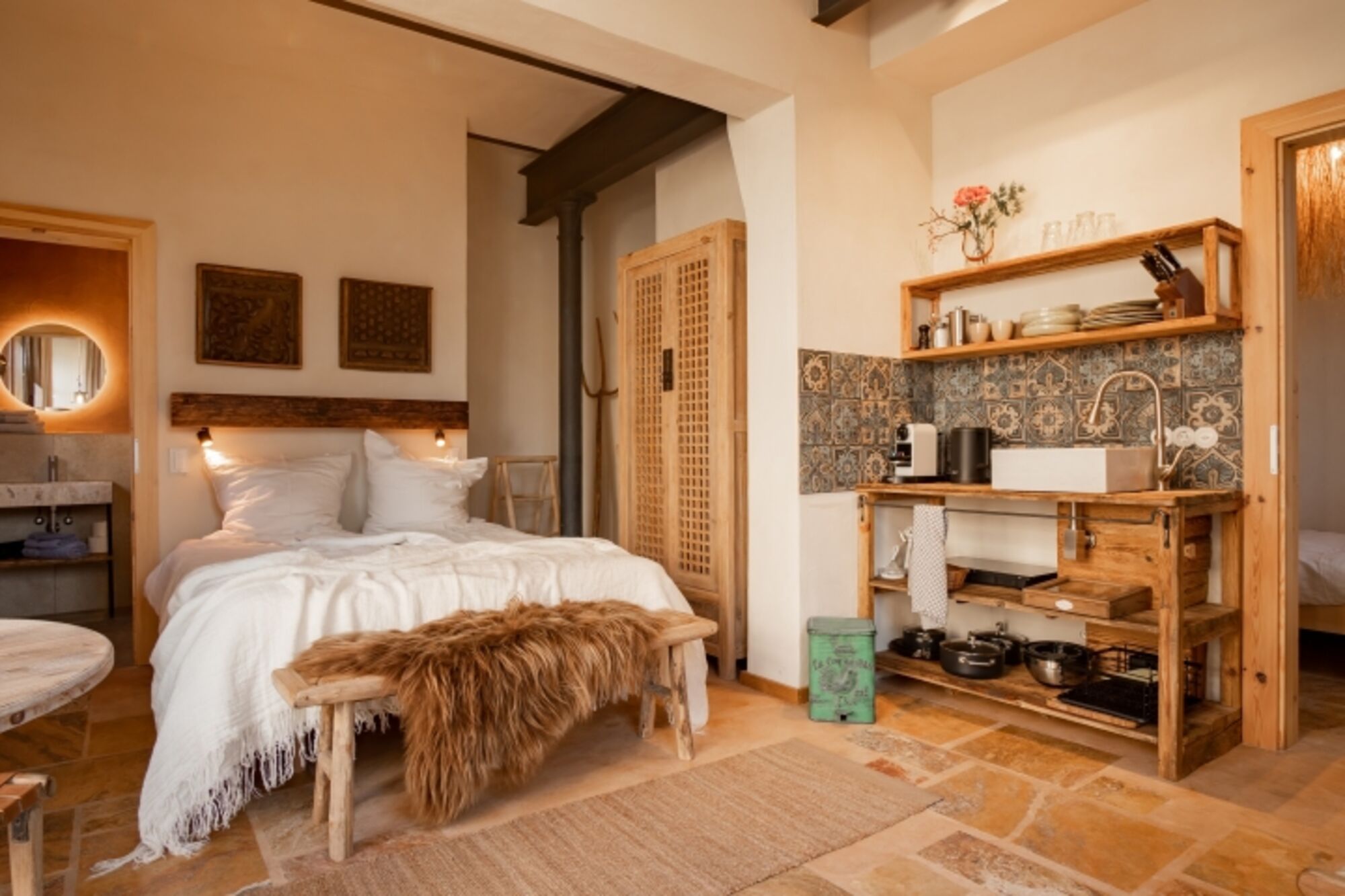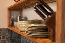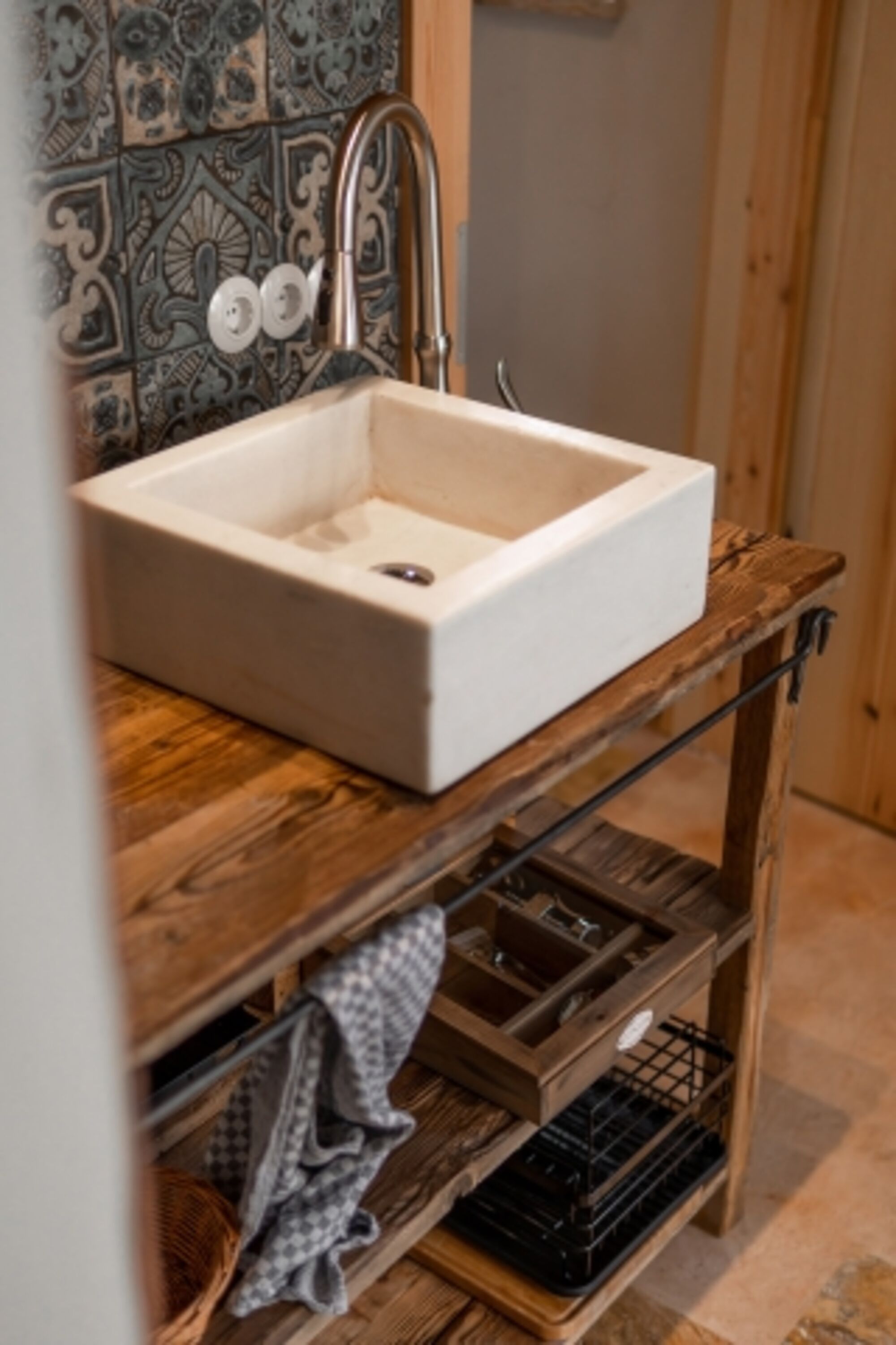 In den Studios; Fussbodenheizung unter Holzdielen und Travertin, große Duschen, wertige Armaturen, wunderbare Fliesen, Küchenzeile, WLAN und Sat-TV und tolle Beleuchtung.