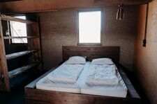 Die Juttershut hat acht Betten. Im Erdgeschoss befindet sich das Hauptschlafzimmer und ein Zimmer mit Etagenbett. In der ersten Etage befinden sich die vier anderen Schlafplätze. Die Betten sind fest, normal groß und mit einem Lattenrost ausgestattet. Die Kabine hat ein eigenes Badezimmer mit Dusche, Toilette und Waschbecken.