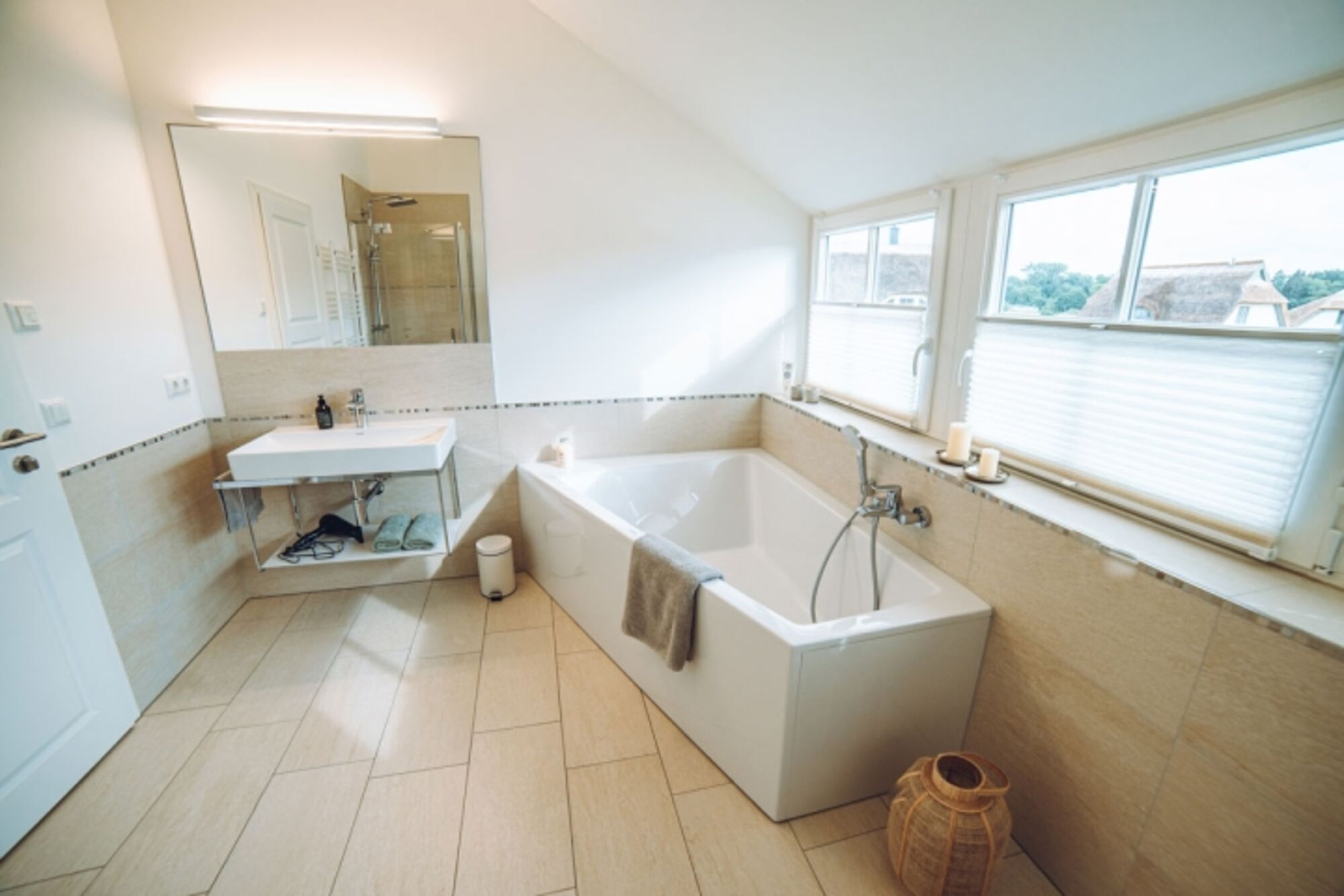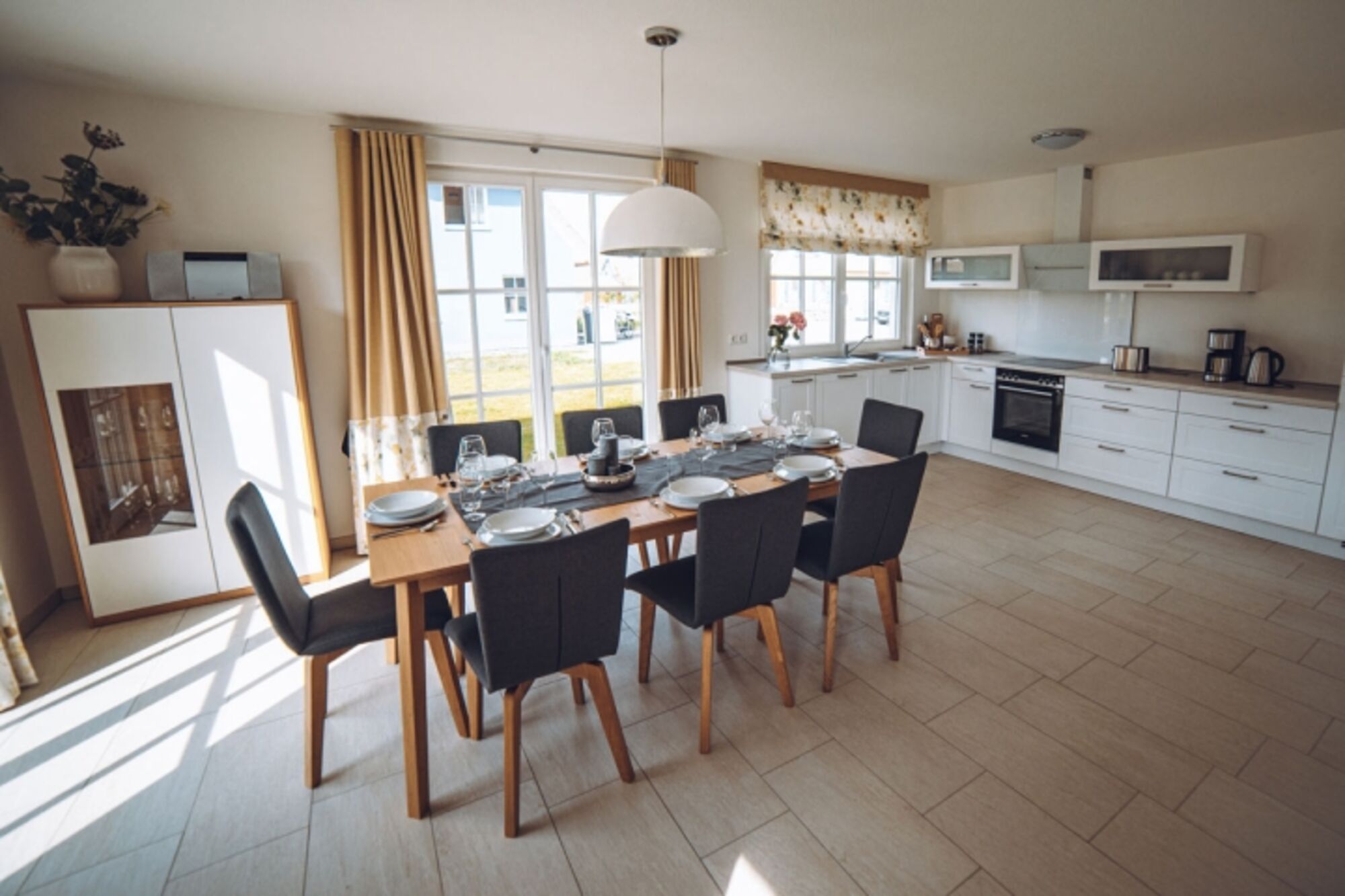 Großzügiges neuerrichtetes schönes Reetdach-Ferienhaus "Auszeit" mit Sauna und Kaminofen, Erstbezug 08/2020. Nichtraucherhaus. Gehobene Ausstattung mit moderner, geschmackvoller Einrichtung. 4 Schlafzimmer, 2 Bäder. Kostenloser Internetzugang (W-Lan)., Fußbodenheizung. Waschmaschine/Trockner. Terrasse mit Sitzmöbeln, Hängematten und 2 Strandkörben, Holzkohle-Grill, 2 Pkw-Stellplätze am Haus, Belegung mit bis zu 10 Personen möglich durch Aufbettung im Wohnzimmer. Ein Hund ist gestattet. Grundstück ist nicht eingezäunt.