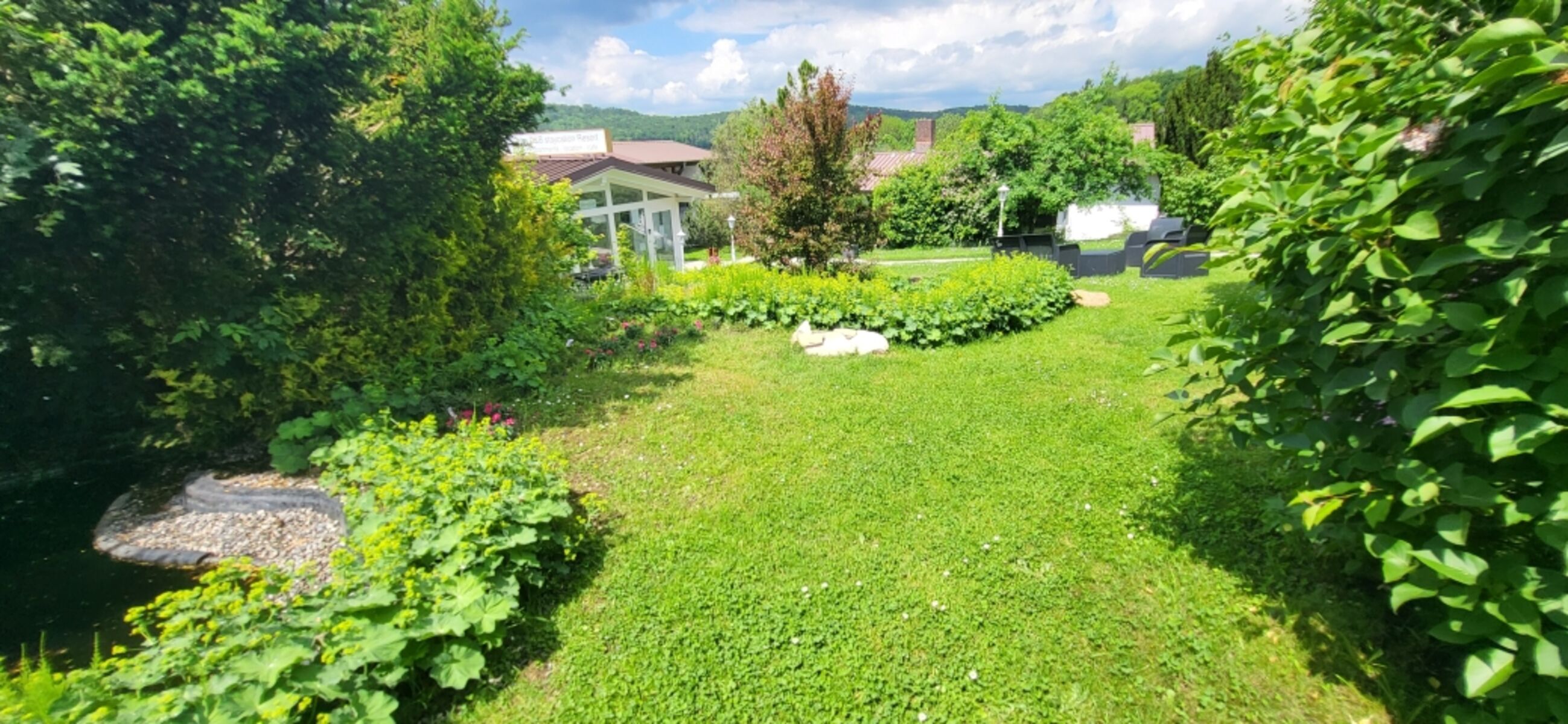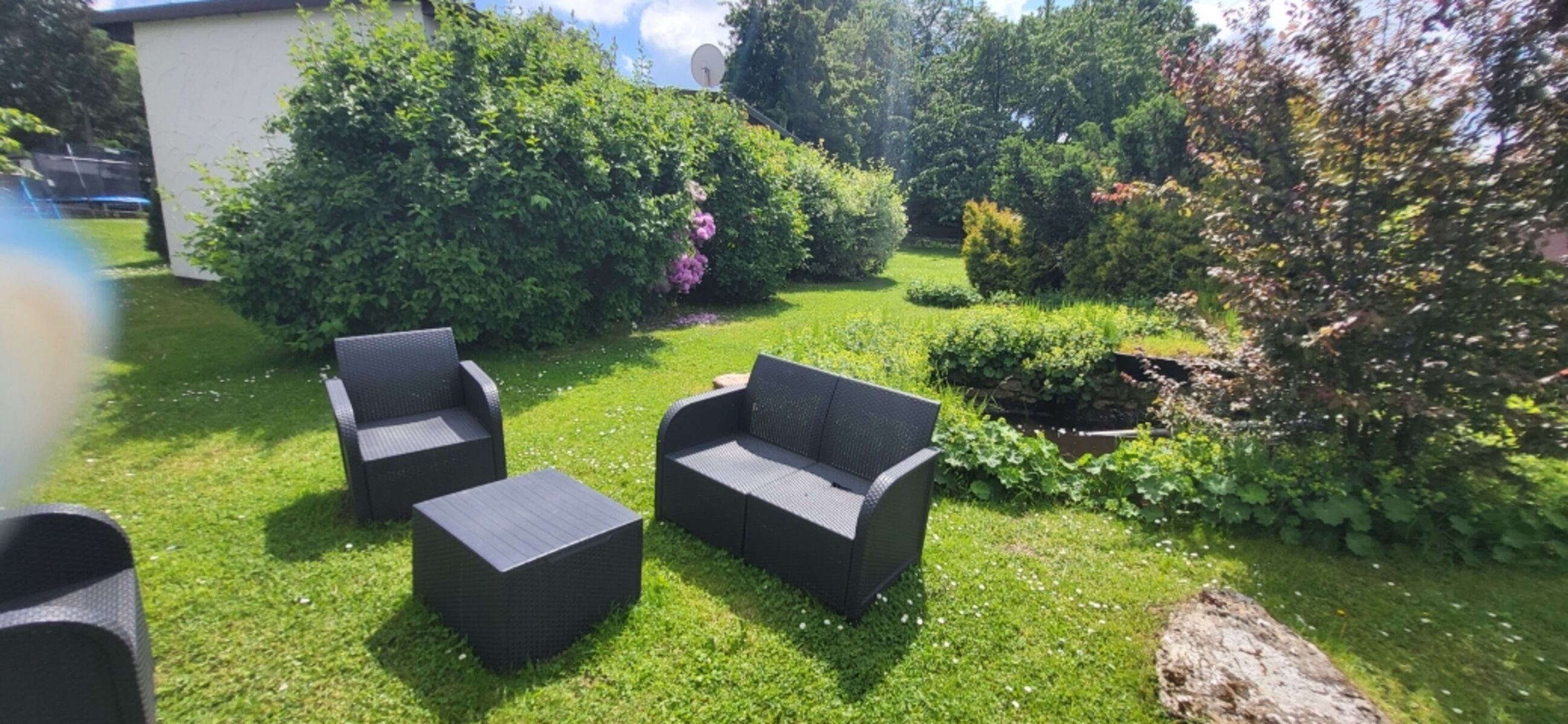 Liegewiese, Gartenmöbel, Kohlegrill, Gasgrill, Bänke, Hof