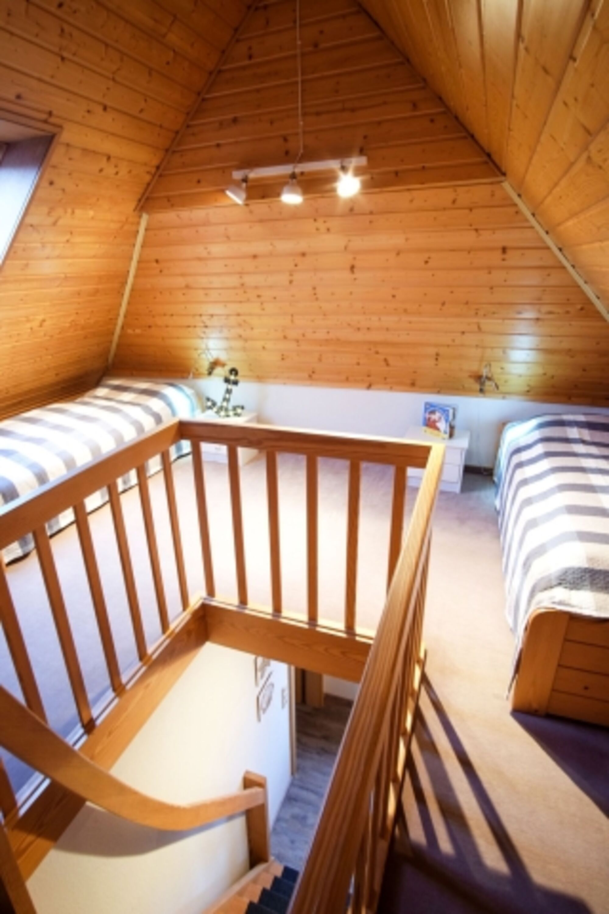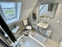 Im 1.OG befinden sich die zwei Schlafzimmer (1x Doppelbett 1,80x2,00m und 1x 1,40x2,00m), das Tageslichtbad mit Dusch-Wanne (niedriger Einstieg), WC, Waschbecken und Deichblick, sowie eine Frisiermöglichkeit im Flur. über die Treppe erreichen Sie die Schlafgalerie mit zwei Einzelbetten. Der perfekte Rückzugsorte für unsere kleinen Gäste. Super gemütlich, direkt unter, Dach. Ein Treppengitter ist montiert! Im Hauptschlafzimmer besteht die Möglichkeit ein Kinderreisebett aufzustellen, welches wir Ihnen kostenfrei zur Verfügung stellen.