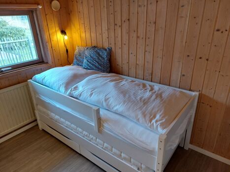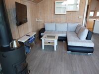 Das Ferienhaus „Ankerglück“ gibt es nur einmal im Feriendorf. Ferienhaus, mit ca. 74 m² Wohn- und Nutzfläche, Belegung bis 6 Personen. Ansprechende Ausstattung mit einer individuellen Note. Das Haus ist mit kostenlosem WLAN ausgestattet. Wohnraum mit gemütlicher Sitzecke, Flachbildfernseher, offene Wohnküche, Einbauküche (Cerankochfeld/ Backofen, Kühlschrank/Gefrierfach, Mikrowelle), Essplatz für 6 Personen, Duschbad/WC, Diele, Garderobe, Abstellraum innen und außen. Die Schlafräume sind vielfältig und gemütlich gestaltet: Ein Zimmer mit einem Doppelbett (160 x 200 cm), ein weiteres mit zwei Einzelbetten (80 x 200 cm) und ein Zimmer mit einem Kojenbett (80 x 180 cm) inklusive Rausfallschutz sowie einem ausziehbaren Bett (80 x 170 cm). In diesem Zimmer bietet der große Kleiderschrank ausreichend Stauraum für alle. Die große, tlws. überdachte Sonnenterrasse ist nach Westen, zum kleinen Teich, abgeschirmt von Baumbewuchs, ausgerichtet. Zum Ferienhaus gehört ein Carport sowie ein zweiter Parklplatz.