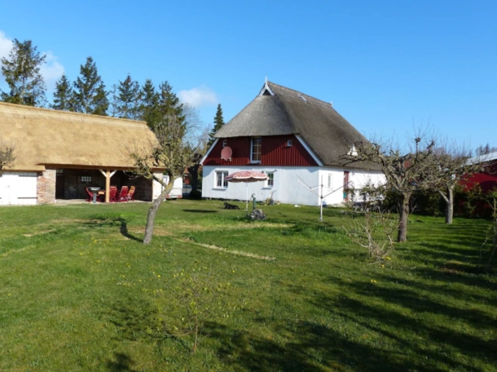 Reetdachhaus in Bresewitz. ca 100m² Wohnfläche und ca. 1000m² komplett umzäuntes Grundstück. Haus und Grundstück stehen dem Mieter allein zur Verfügung. Keine Eigentümer oder weitere Mieter vor Ort. Das Haus verfügt über ein Wohnzimmer, 2 Schlafzimmer, eine voll ausgestattete Küche, ein Duschbad sowie ein weiteres WC mit Waschmaschine.