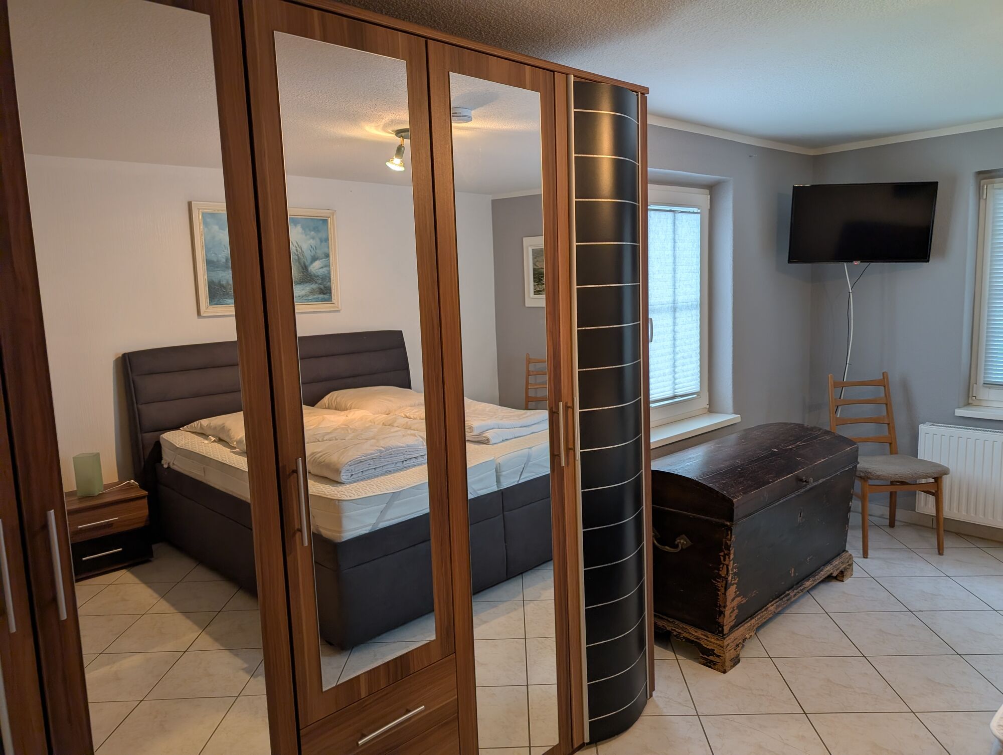 Doppelbett 1,80 x 2,00m, Spiegel, Leselampe am Bett, Fliegengitter