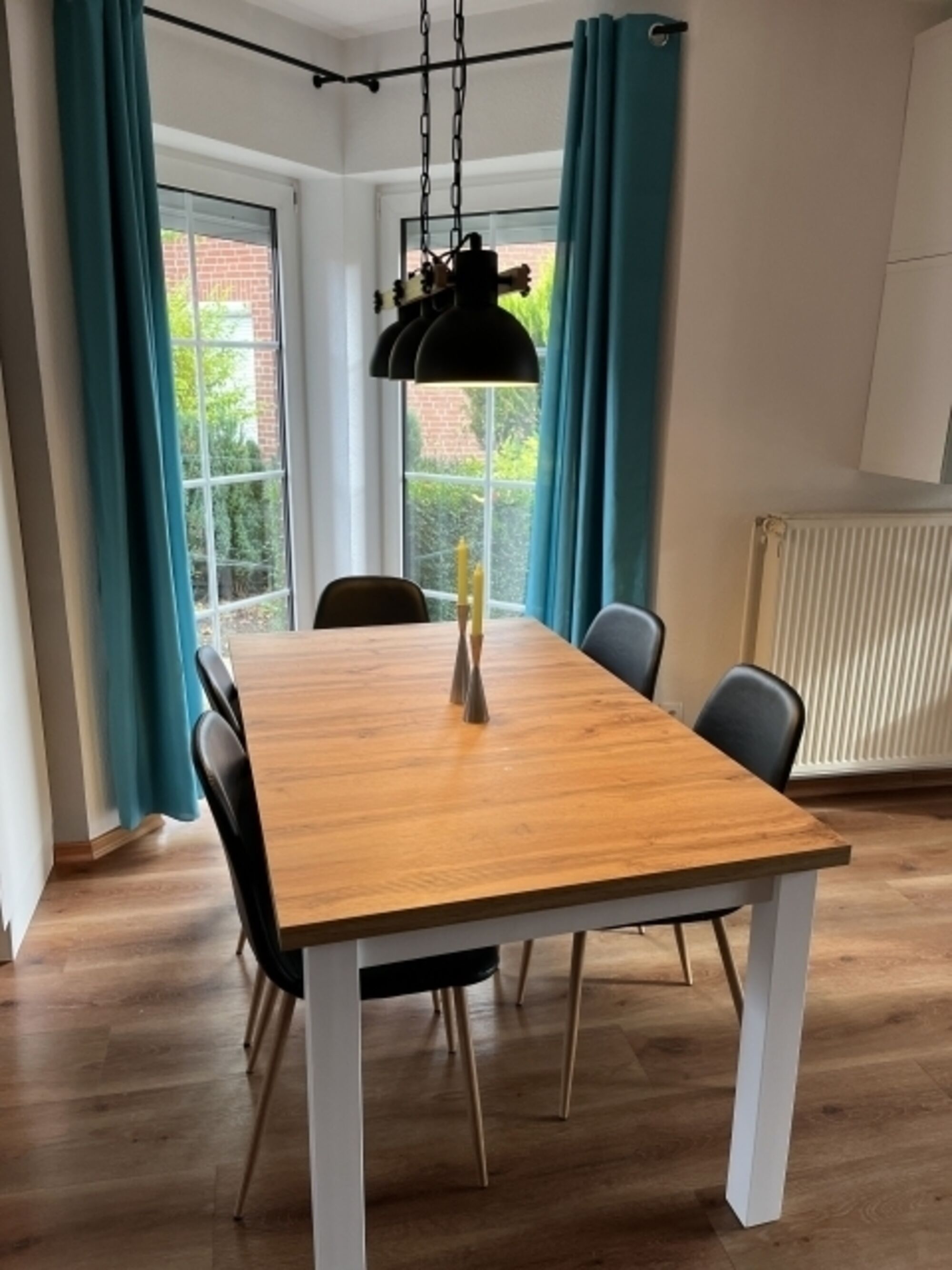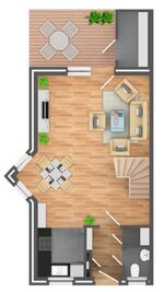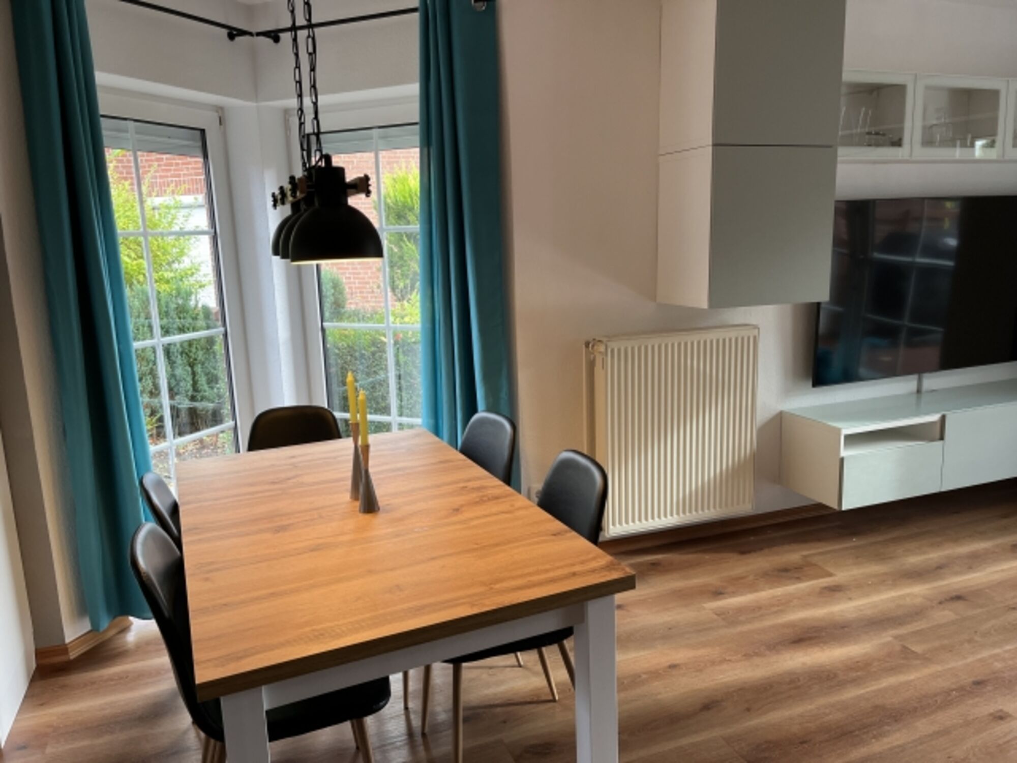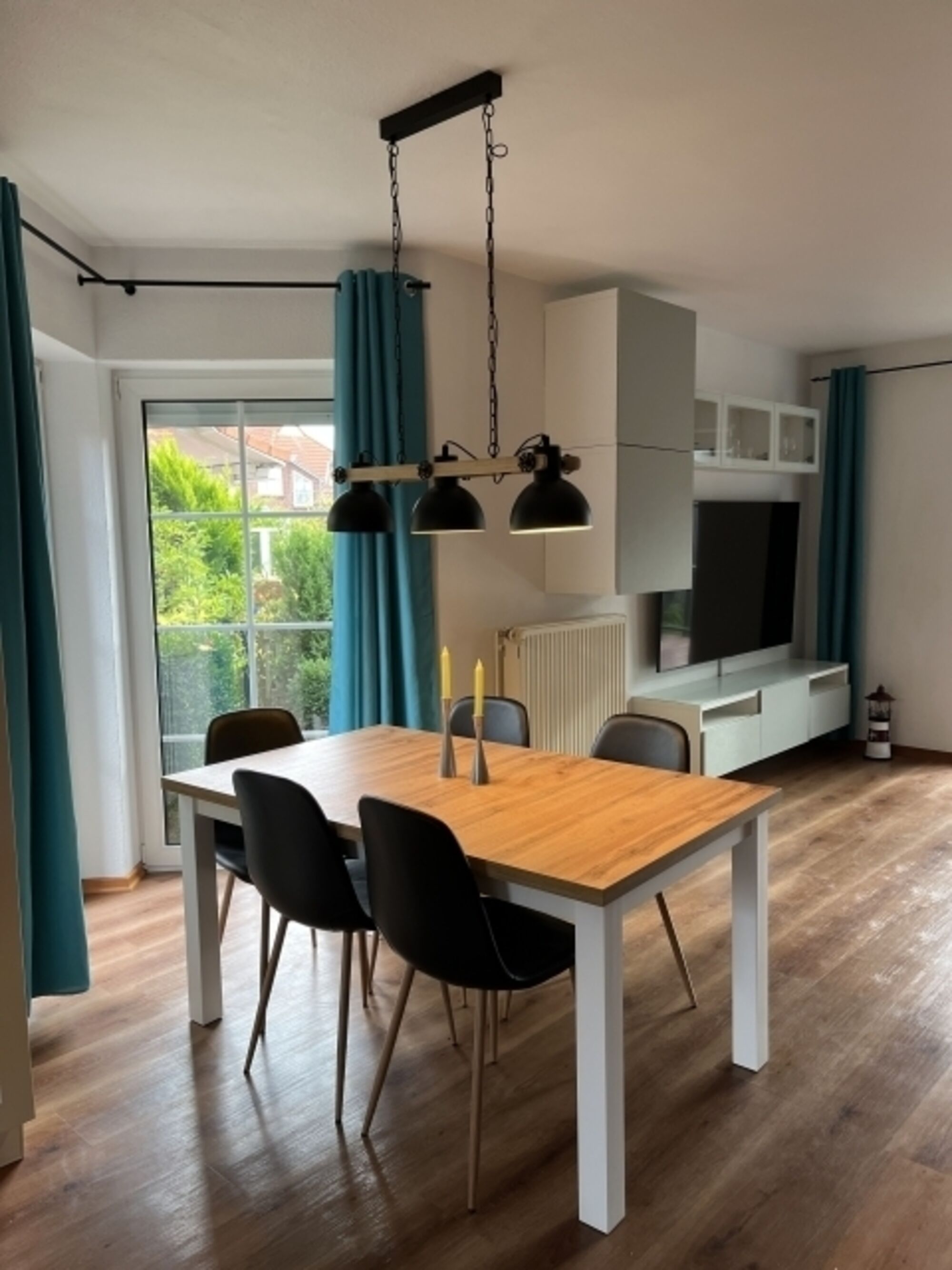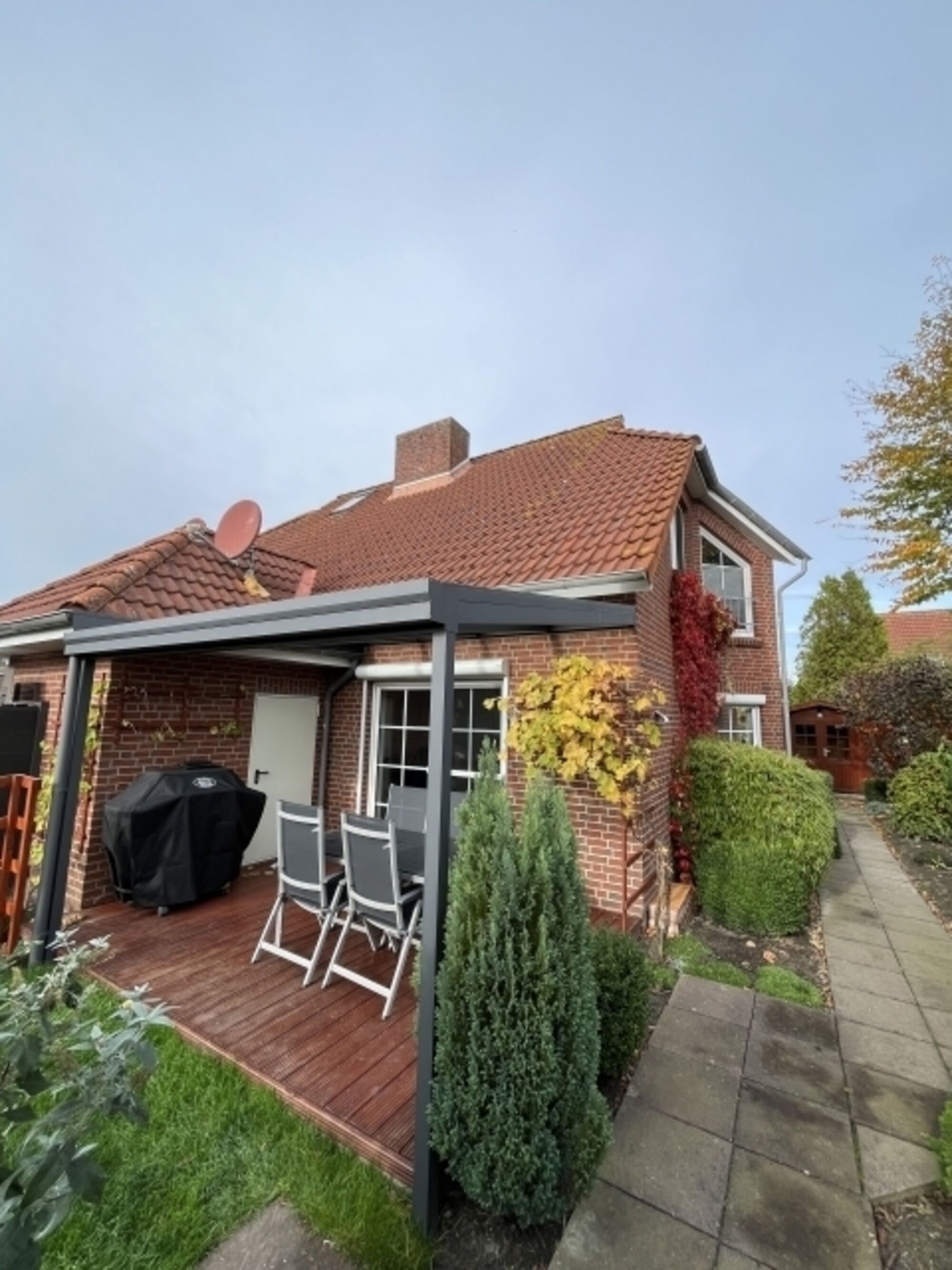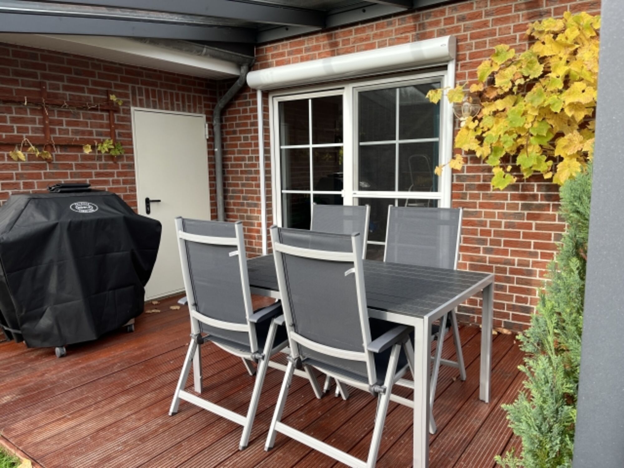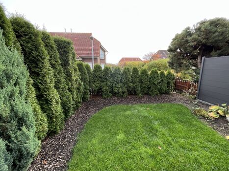 Im Erdgeschoß können Sie im geräumigen Wohnraum mit einer gemütlichen Couchgarnitur mit Schlaffunktion, 70 Zoll Fernseher und Kamin entspannen Die Essecke ist im Wohnraum integriert und schließ an die offene Küche mit Geschirrspüler, Backofen, Kühlschrank und separates großes Gefrierfach und weiteren Küchengeräten an. Im Erdgeschoss befindet sich weiterhin ein kleines Gäste-WC. Im Gesamten Erdgeschoß gibt es Rollläden. Der Garten mit einer gemütlichen Überdachten Sitzgelegenheit mit einem Gasgrill ist nach Süd-West ausgerichtet.