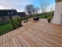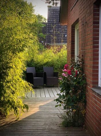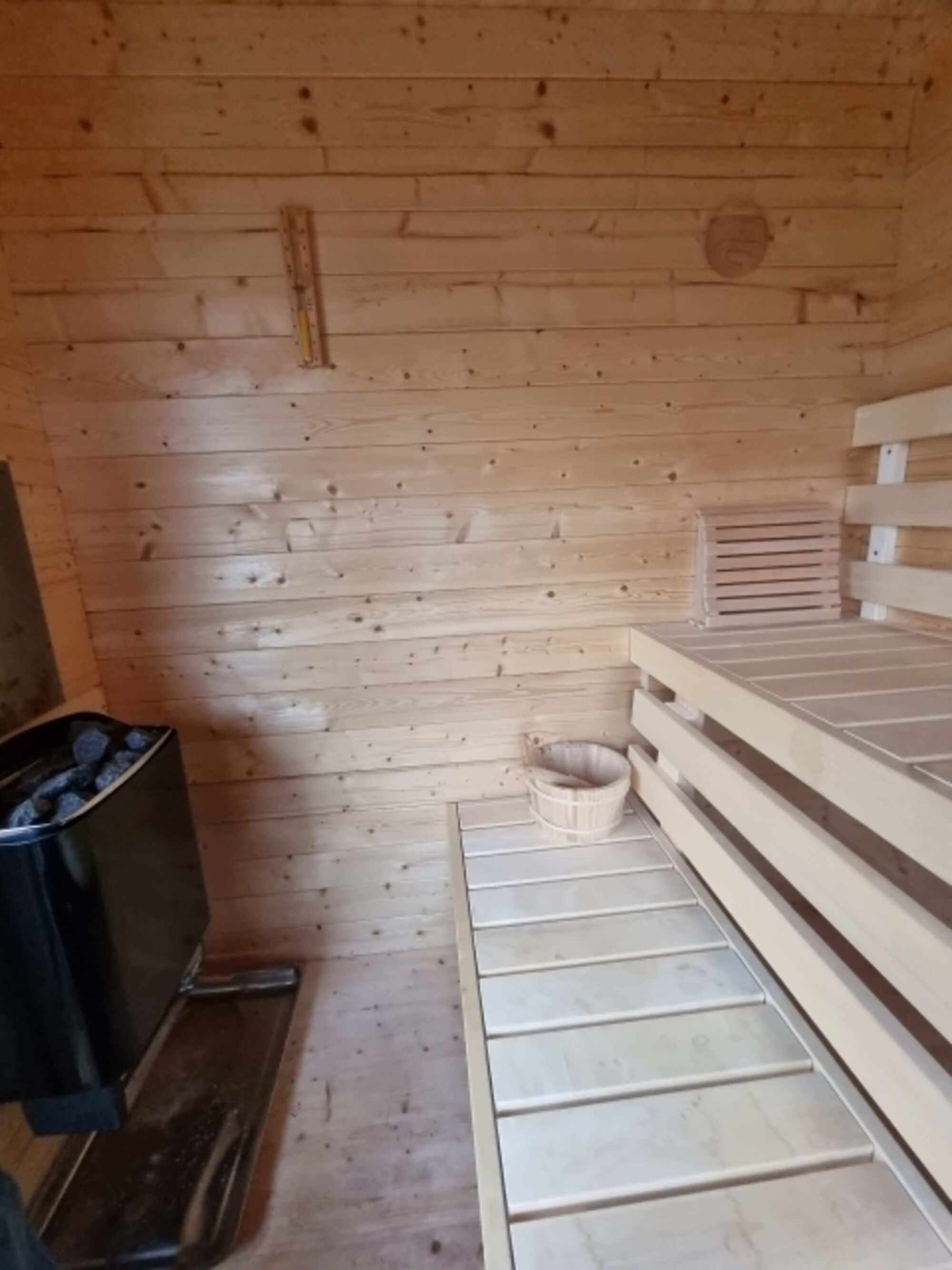 Das 1000 qm große Grundstück ist mit einem 1,25 m hohen umlaufenden Zaun umgeben. Sie haben gleich mehrere Terrassen, um die Seele baumeln zu lassen. Im Außenbereich befindet sich zudem eine Sauna, die Sie gegen Gebühr gerne benutzen dürfen.