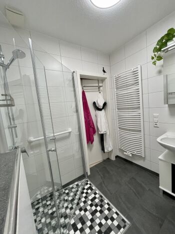 Um den Tag noch abzuschließen, können Sie auf der privaten Terrasse gemütlich sitzen und Sonne tanken und die frische Luft an der See genießen. Nach einem großartigen Tag schlafen Sie bei uns auf 7 Zonen Komfortmatratzen. Unsere Bettwäsche ist Allergiker freundlich. Zudem ist die gesamte Wohnung gefliest.