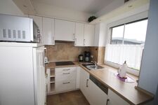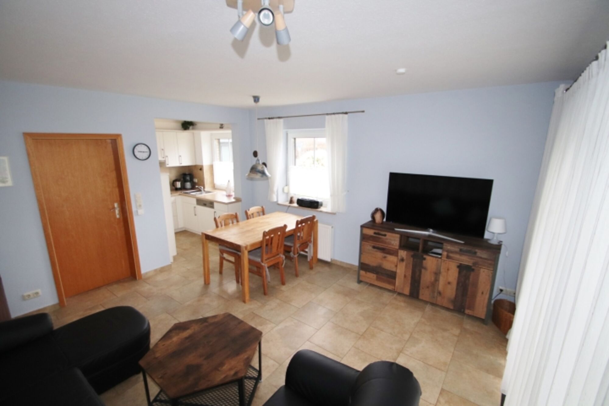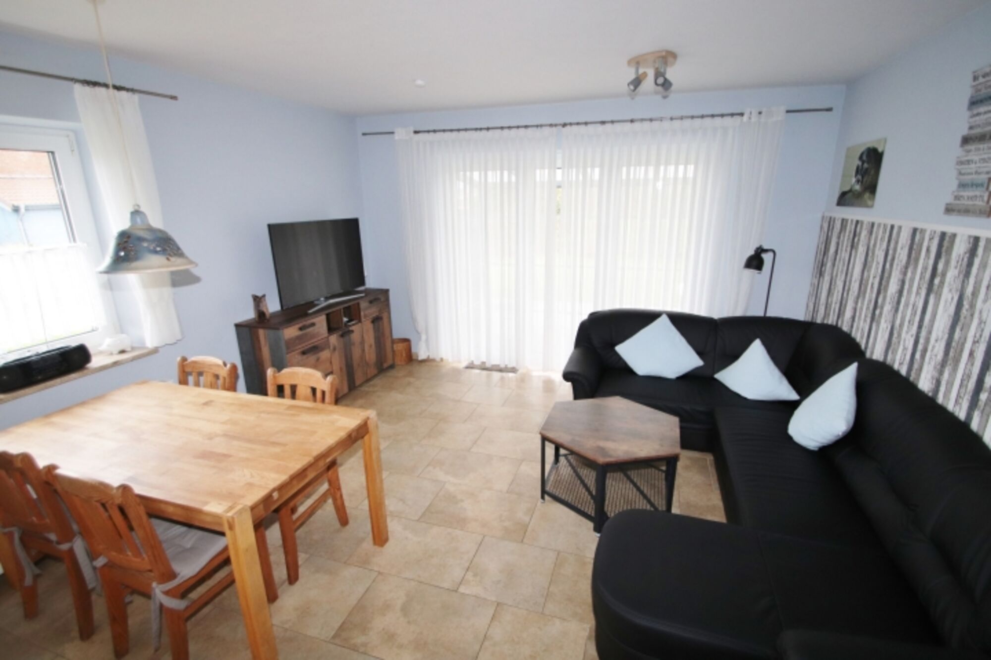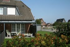 Die eingezäunte Doppelhaushälfte befindet sich ca. 150 m vom Hundestrand entfernt.