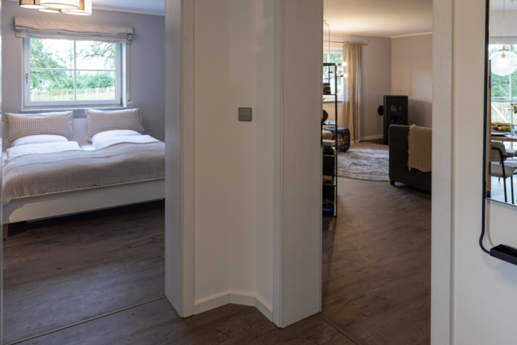In einem separaten Flügel eines Hauses liegt diese exklusive Ferienwohnung mit eigenem Eingang – ein Rückzugsort für Ruhe, Komfort und Naturgenuss. Im idyllischen Ort Schmalfelden mit seinen 200 Einwohnern erwartet Sie eine 90 m² große ebenerdige Wohnung mit zwei Schlafzimmern, ideal für bis zu vier Personen und ihren Hund.