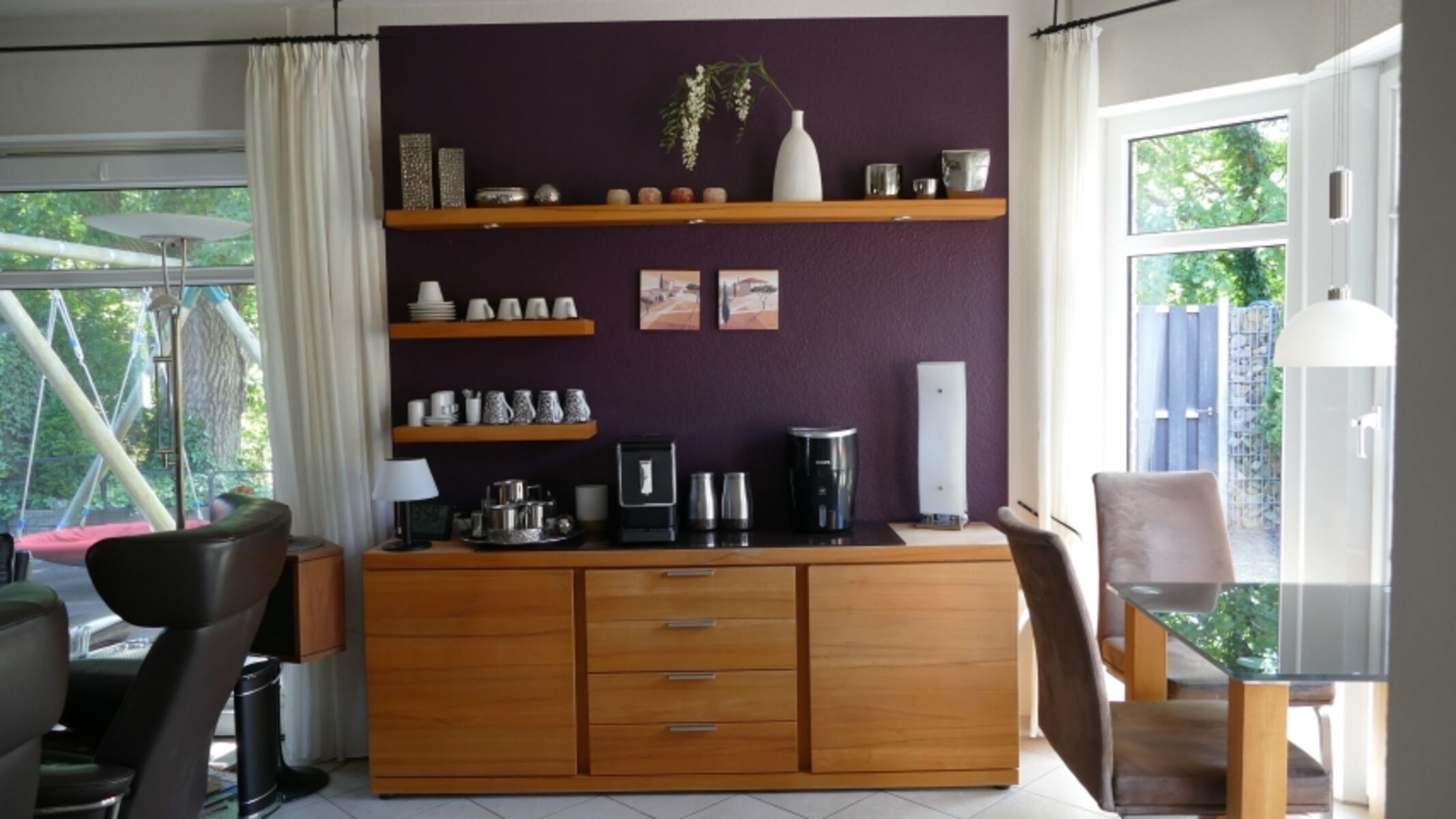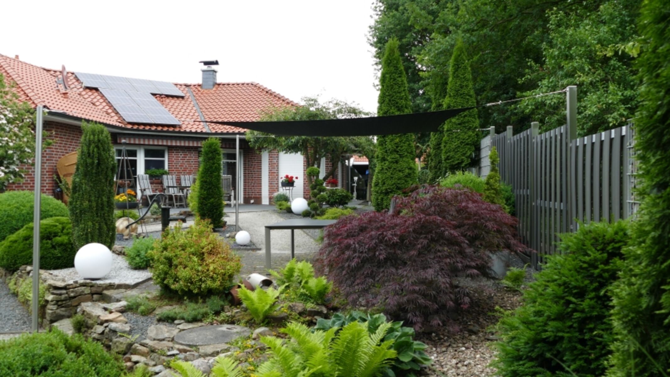 Es bietet reichlich Komfort drinnen und draußen. Der große komplett eingezäunte terrassenförmig angelegte nicht einsehbare Garten ist ein Paradies.