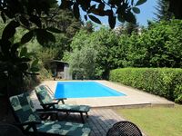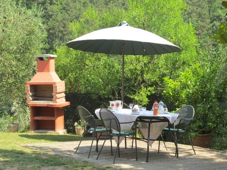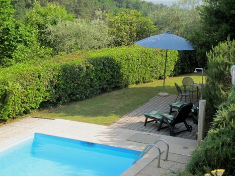 Nur wenige Schritte vom Haus entfernt können Sie sich im 4 x 8 m großen illuminierten Privat-Pool mit Außendusche entspannen (Tiefe ca. 1,30 m). Der Pool, der 3 x in der Woche gereinigt wird, ist von ca. Mitte März bis ca. Anfang Oktober - je nach Wetterlage - geöffnet. Natürlich ist auch FKK möglich. Der Außenbereich ist mit einem großen Sonnenschirm am Pool ausgestattet, zusätzlich gibt es Sonnenliegen, Sitz- und Essgelegenheit auf einer Terrasse am Pool sowie eine Sitz- und Essgelegenheit auf einer Terrasse mit fest gemauertem komfortablem Barbecue im Garten vor dem Haus: Hier verbringen Sie unvergessliche (Grill-) Abende in gemütlicher Runde. Im Garten gedeiht gesundes und unbehandeltes Obst: Pflaumen, Feigen und Äpfel, die Sie gerne ernten können. Frisch auf den Tisch!