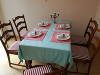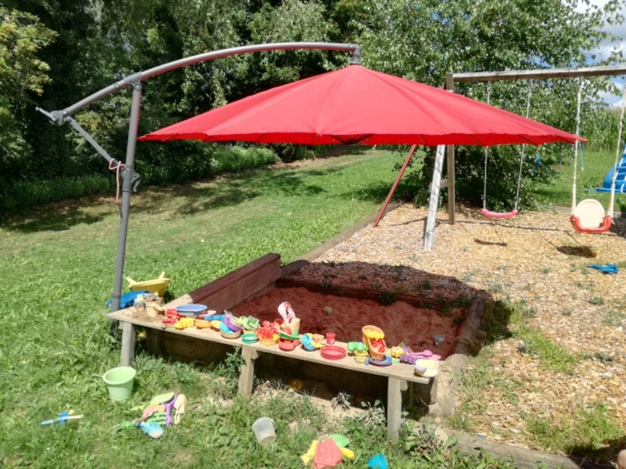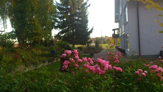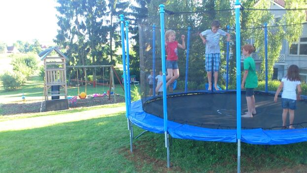 Ganz im Grünen auf einem ehemaligen Bauernhof außerhalb des Ortes gelegen gibt es schöne Gassistrecken direkt ab Haus. "Ferienwohnungen Eichenhof" in der sonnigen Südpfalz an der französischen Grenze und kurz vorm Pfälzer Wald. Dort bieten wir mehrere Ferienwohnungen an. Hier unser "bestes Pferd im Stall", die 80 qm große Fewo im 1. OG mit 2 Schlafzimmern. Lichtdurchflutet mit Blick auf den Garten. Wir haben ein großes Gelände, das in die umliegenden Felder übergeht. Es gibt einen großen Spielplatz mit Trampolin und Baumhaus. Dazu viele Kinderfahrzeuge. Auf unserem Hof gibt es Katzen und Hühner, die man gerne füttern darf. Damit auch eigene Eier, sowie weitere Erzeugnisse aus eigener Herstellung. Es gibt einen großen (Nutz)garten. Beim Nachbarn kann man Kühe im Stall besuchen, es gibt Pferde und Alpakas. Wir sorgen mit viel Engagement dafür, dass sich Gäste bei uns wohlfühlen. Unseren Gästen gewähren wir viel Freiheit, worunter der das Ruhebedürfnis anderer Gäste nicht leidet. Für Gruppen und zusammenreisende Familien bemühen wir uns mit viel Flexibilität um gute Lösungen. Dabei hilft auch der zusätzliche Aufenthaltsraum mit Küche für bis zu 16 Personen.