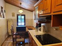 4-Platten Herd, Cerankochfeld, Dunstabzugshaube, Kühlschrank mit Gefrierfach, Kaffeevollautomat, Nespresso-Automat, Korkenzieher / Flaschenöffner, Essplatz in der Küche