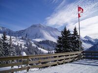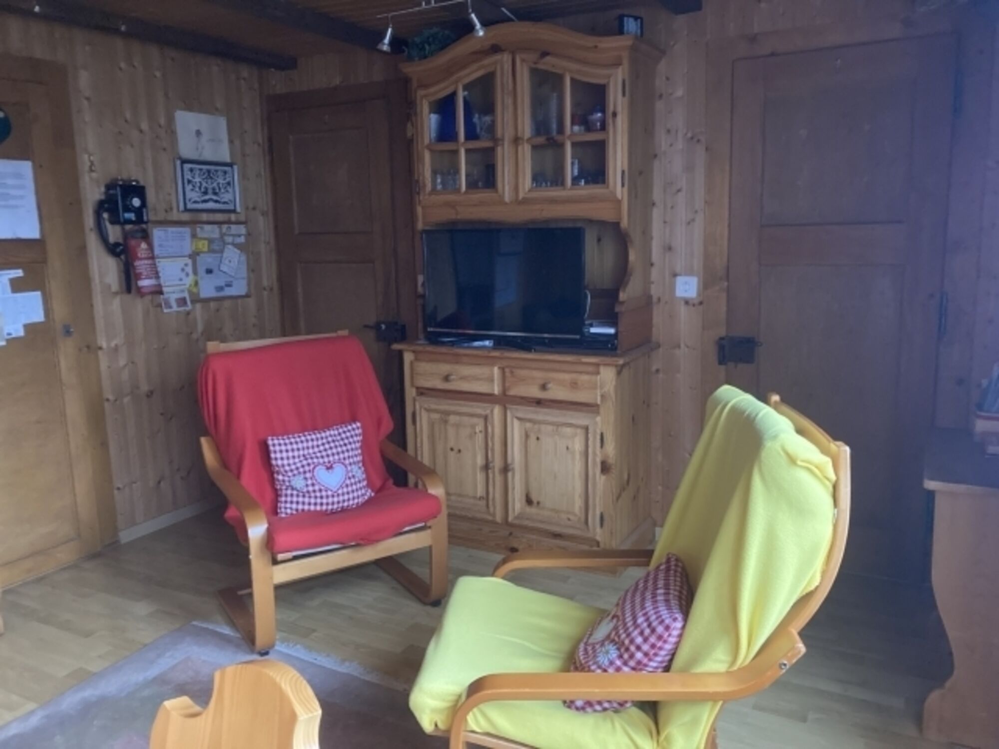 Dann zu Fuss 10 Minuten mit Ihrem Rucksack. Und schon sind Sie in unserem schönen Chalet. Mit sehr grossem Umschwung, alles flach.