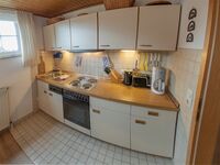 4-Platten Herd, Dunstabzugshaube, Kühlschrank mit Gefrierfach, Eierkocher, Korkenzieher / Flaschenöffner, Essplatz in der Küche