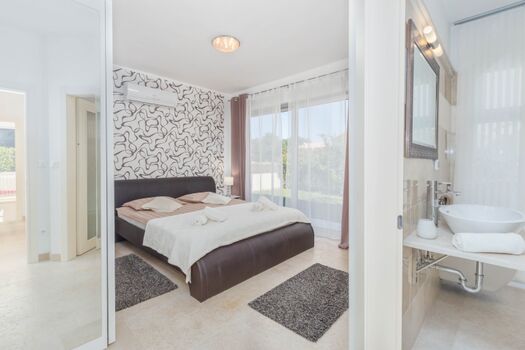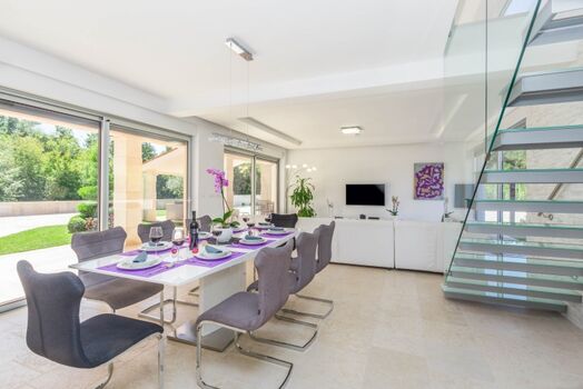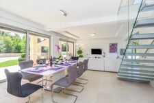 Das Innere dieser modern eingerichteten Villa bietet eine warme Atmosphäre, in der Sie sich während Ihres Aufenthalts wie zu Hause fühlen werden. Die Villa verfügt über ein großes Wohnzimmer, eine voll ausgestattete Küche mit Essbereich, vier geräumige Schlafzimmer und drei Badezimmer sowie ein Gäste-WC. Große Fenster sorgen für viel natürliches Licht.