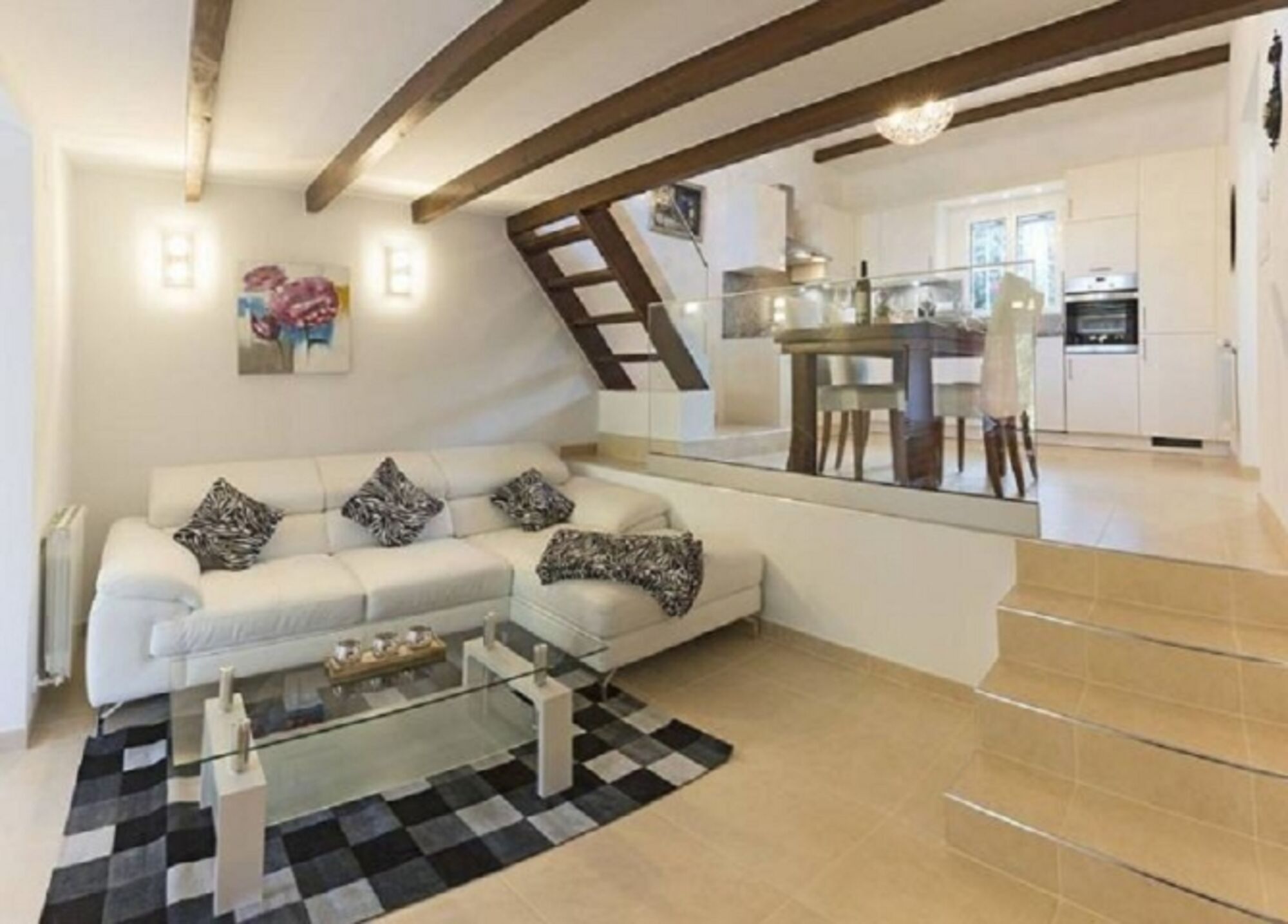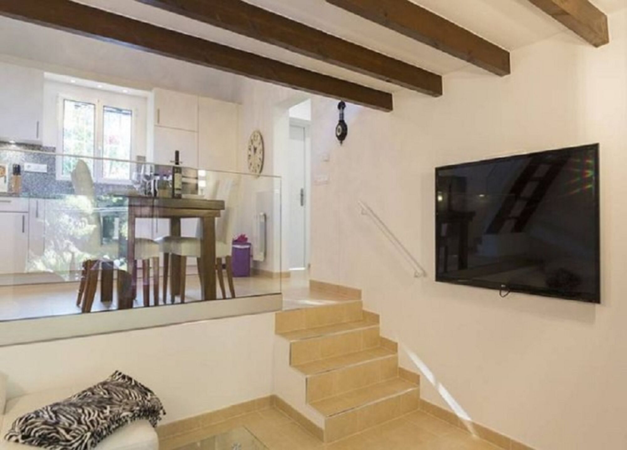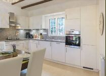 Die moderne Küchenzeile bietet Ihnen jeglichen Komfort. Glaskeramikkochfeld mit Dunstabzugshaube, Backofen, Geschirrspüler, Kühl-Gefrierkombination 240l. Ausgestattet mit ausreichend Geschirr, Besteck, Gläsern, Töpfen und Pfannen, stellen wir Ihnen natürlich auch Kaffeemaschine, Nespresso-Kapselmaschine, Wasserkocher, Toaster und Rühr-Pürierstab zur Verfügung. Es schließt sich ein Wohnzimmer an, dort finden Sie eine gemütliche Ledercouch mit Chaiselongue. Selbstverständlich bieten wir auch da einen Flachbildfernseher mit deutschem SAT TV.
