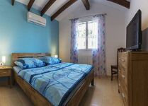 Vom Wohnzimmer gelangen Sie in ein helles Zimmer mit Meerblick. Dort befindet sich ein Tisch mit bequemen Sesseln. Von der Wohnküche aus gelangen Sie über eine Treppe auf eine Galerie über dem Wohnzimmer. Dort finden Sie eine gemütliche Lese-Ecke mit 2 Relax-Sesseln. Im kleinen Flur nach dem Hauseingang befindet sich der Zugang zu einem geräumigen WC mit Waschtisch. Der Flur führt Sie auch zu dem ersten Doppelschlafzimmer. Am Ende des Flures zum einen der Zugang zum Tageslicht-Duschbad mit bodengleicher Dusche von 200x110 cm, Regendusche, Handbrause, Toilette, Urinal und Doppel-Waschtisch. Zum anderen der Zugang zu einem weiteren Doppelschlafzimmer. Beide Schlafzimmer haben massive Doppel-Holzbetten 180x200cm mit 2 Matratzen und 5-Zonen-Komfort-Lattenrosten sowie Einbauschränke mit Schiebetüren. Desweiteren bieten wir Ihnen Bettdecken und große Kissen.