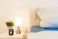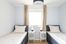2 Schlafzimmer, die Sie über den Flur erreichen, sind zum einen mit einem großen Doppelbett, einem Schrank sowie einem Fernseher ausgestattet. Den Balkon erreichen Sie durche eine große Glastür. Das andere Schlafzimmer hat zwei einzelne Boxsprigbetten. Die Verdunklungsgardinen sorgen für eine angenhme Bettruhe.