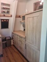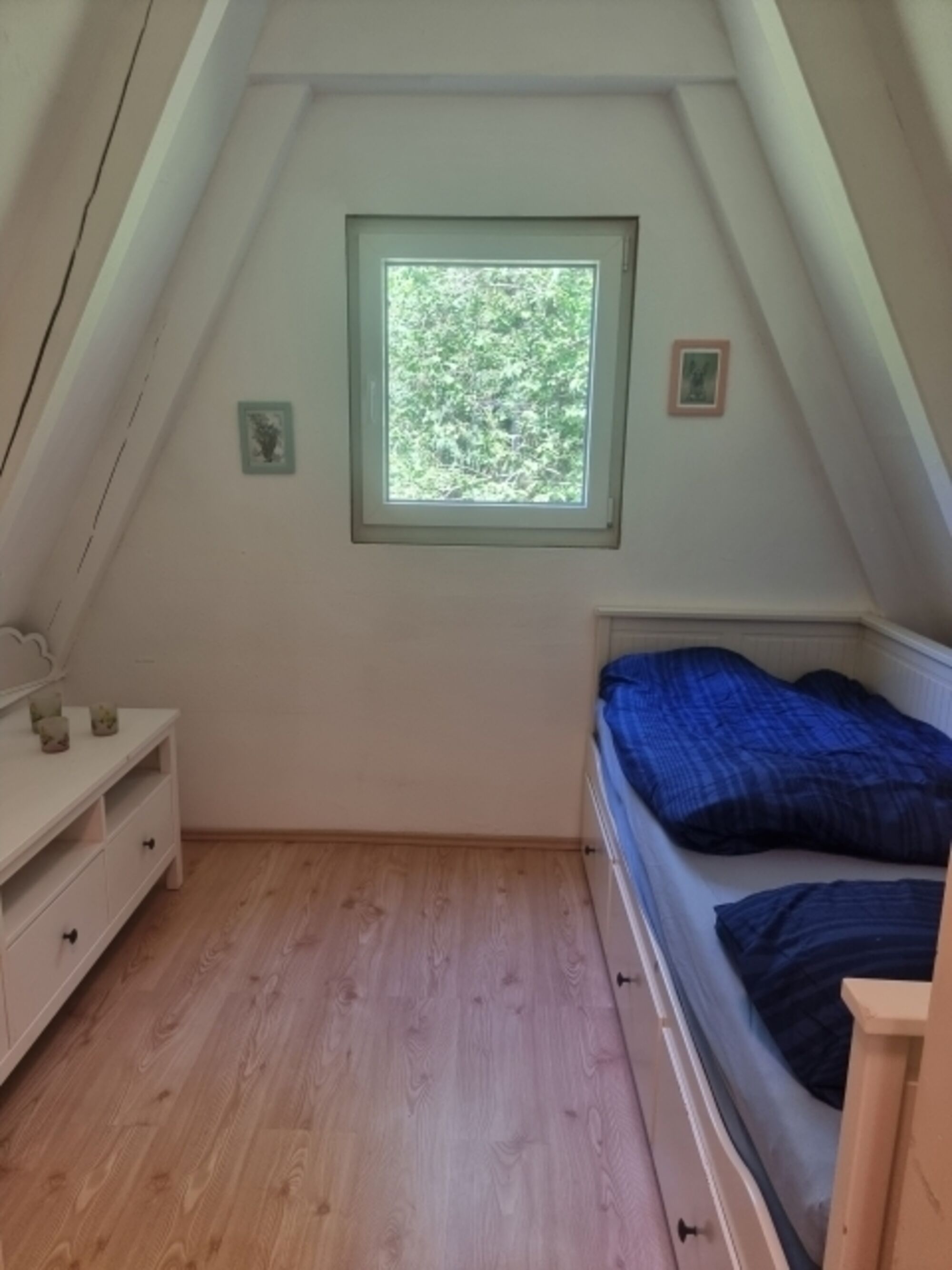 Aufgrund der offenen Galerie und der engen Treppe (siehe Fotos) ist das Haus nur bedingt für Kleinkinder geeignet.