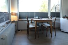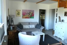 Im Wohnbereich ist ein Smart TV vorhanden, der für Unterhaltung sorgt, sowie ein Essbereich für vier Personen, ideal für gesellige Runden oder romantische Dinner. Zudem steht kostenfreies WLAN zur Verfügung, damit Sie auch im Urlaub vernetzt bleiben können.