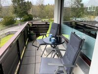 Das helle Wohnzimmer besticht durch eine großzügige Fensterfront, die viel Tageslicht hereinlässt und eine freundliche Atmosphäre schafft. Direkt vom Wohnzimmer aus gelangt man auf den gemütlichen Süd-West Balkon, der mit Gartenmöbeln ausgestattet ist – perfekt für entspannte Abende im Freien.
