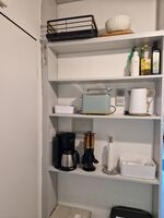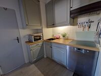 Die Küche ist komplett ausgestattet und lässt keine Wünsche offen. Hier finden Sie einen Herd, eine Mikrowelle, eine Kaffeemaschine, einen Wasserkocher, einen Toaster und eine Spülmaschine. Zusätzlich gibt es einen kleinen Ofen, der an eine Steckdose angeschlossen werden kann.