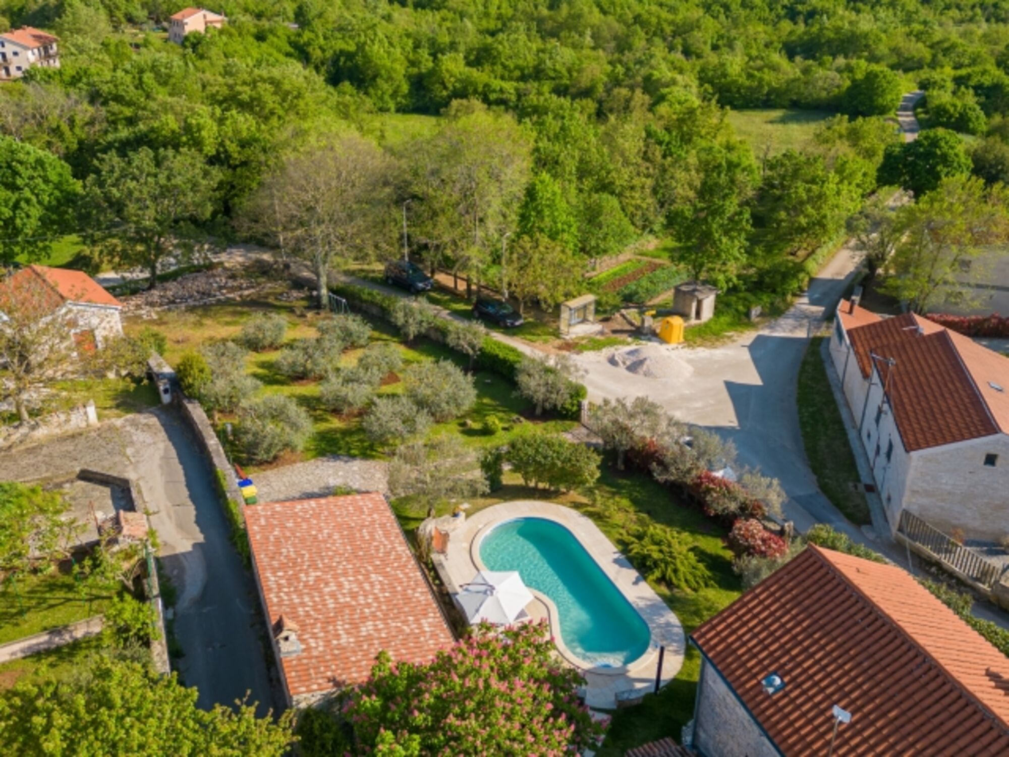 Die Villa bietet die perfekte Kombination aus Erholung und authentischem istrischen Ambiente und ist zudem ein idealer Ausgangspunkt, um nahegelegene Städte wie Rovinj, Poreč, Svetvinčenat und Labin sowie zahlreiche Wander- und Radwege zu erkunden.