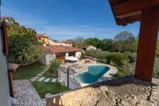 Im großzügigen Garten gibt es einen privaten Pool (36 m²), eine Außenküche mit Grill, Kühlschrank und Weinkühlschrank, einen großen Tisch und eine bequeme Lounge-Ecke. Die Villa ist von Olivenbäumen umgeben. Den Gästen stehen zudem ein Hundepool und ein Boccia-Platz zur Verfügung.