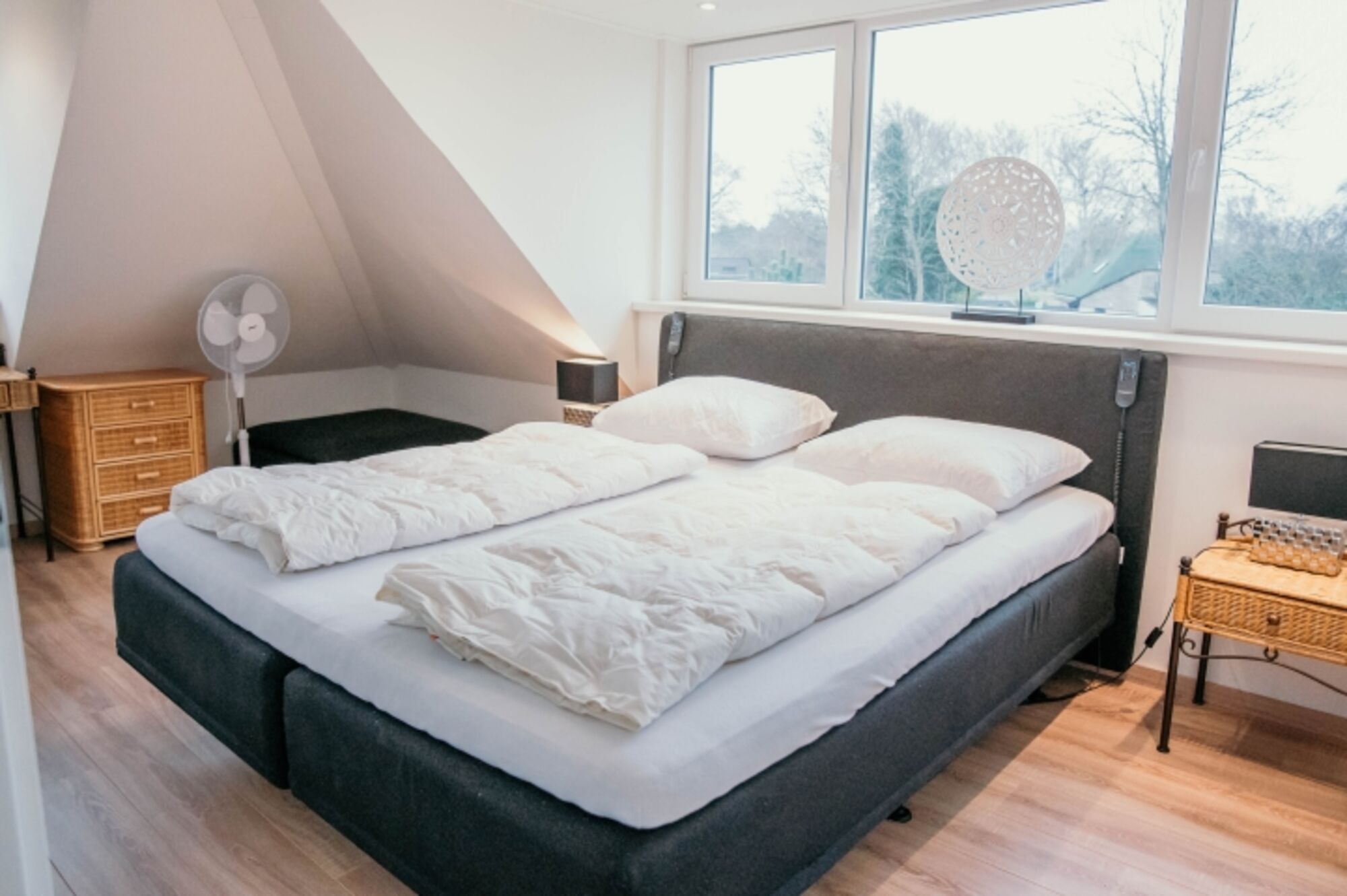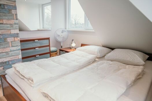 Auf der ersten Etage befinden sich drei großzügige Schlafzimmer mit jeweils zwei Einzelbetten. Außerdem befindet sich hier noch eine zweite Toilette.