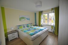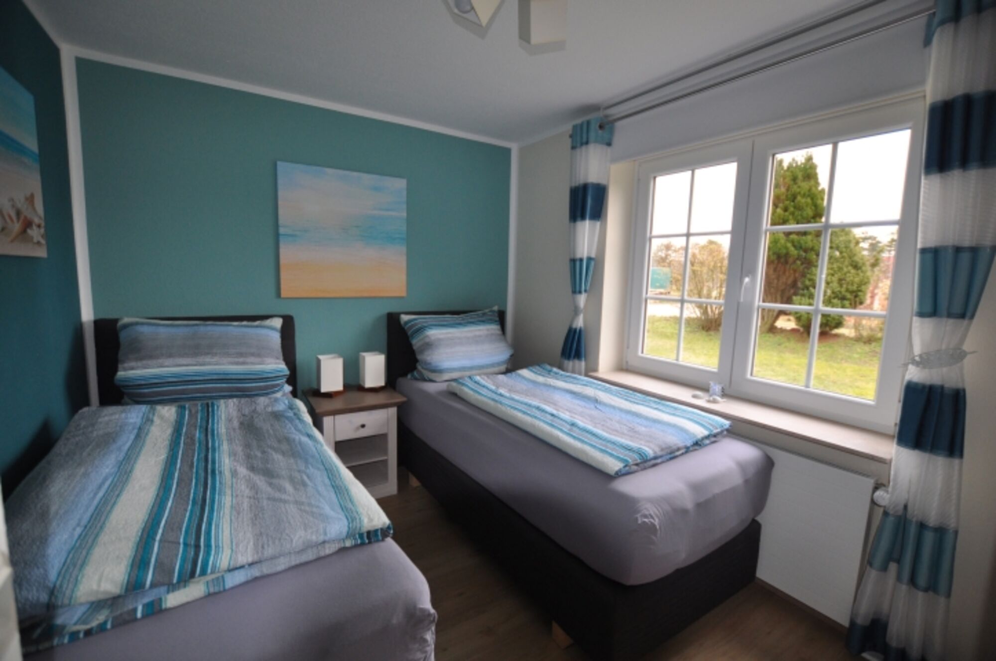 Im ersten Schlafzimmer befindet sich ein Doppelbett, im zweiten Schlafzimmer zwei Boxspringbetten und im dritten Schlafzimmer zwei Einzelbetten. Ein Kinderbett kann auf Anfrage beigestellt werden.