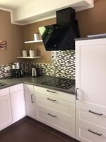 Die Küche ist sehr gut ausgestattet und verfügt u.a. über einen Backofen, eine Mikrowelle und einen Geschirrspüler.