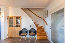 Über eine geschlossene Treppe erreichen Sie das Obergeschoss mit zwei Schlafzimmern (180x 200 und zwei Einzelbetten) und einem weiteren Duschbad.