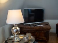 Cerankochfeld, Dunstabzugshaube, Kühlschrank mit Gefrierfach, Gefrierschrank, Nespresso-Automat, Mixer, Korkenzieher / Flaschenöffner, Gewürze (Salz, Pfeffer, Zucker), Geschirrhandtücher, Mülltüten, Essplatz in der Küche, TV in der Küche