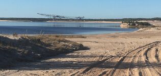 In unmittelbarer Nähe ist die F60, der liegende Eifelturm der Lausitz.
