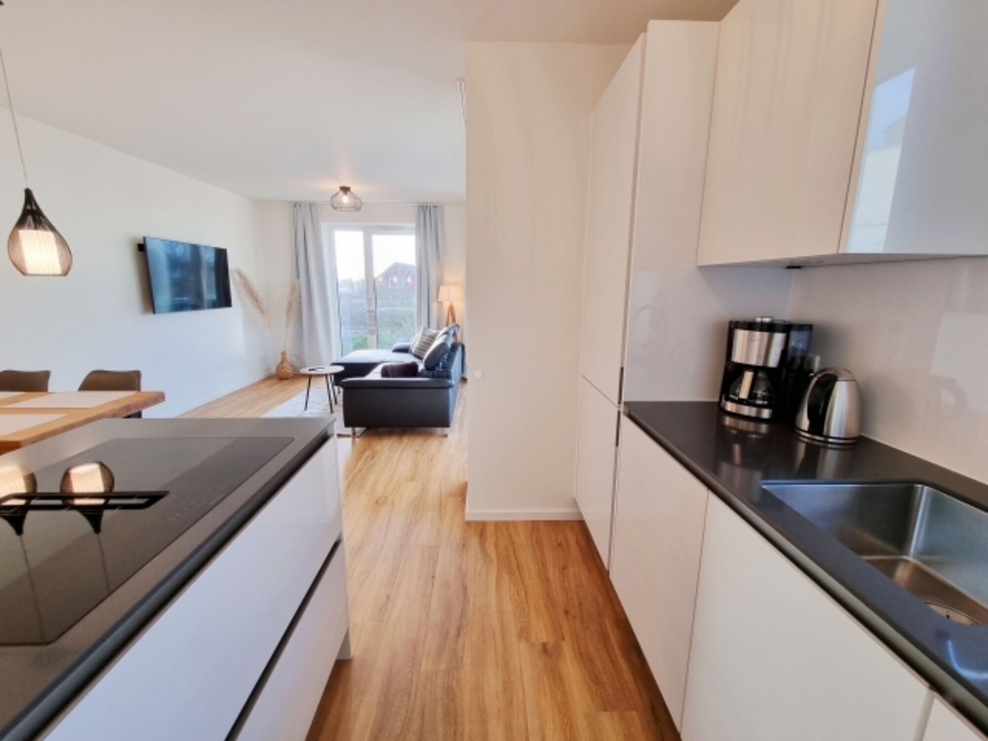 Die Ferienwohnung Ostseeblick befindet sich in einer 2023 fertig gestellten Appartementanlage in zweiter Reihe mit Meerblick vom Balkon am schleswig-holsteinischen Ostseestrand.
