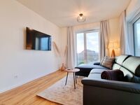 Euch erwartet eine 3-Zimmer Wohnung mit zwei Schlafzimmern, ein Duschbad, ein Wohn-Essbereich mit offener Küche und der großzügige Balkon. Das Appartement ist für 4 Personen (+ eine zusätzliche Person) geeignet. Die Schlafzimmer teilen sich auf in ein Doppelbettzimmer und ein Zweibettzimmer, zudem kann die Couch im Wohnzimmer zur Schlafcouch ausgeweitet werden. Ein eigener PKW-Stellplatz ist direkt am Haus und auch WLAN ist selbstverständlich inklusive. Zwei Hunde sind herzlich willkommen.