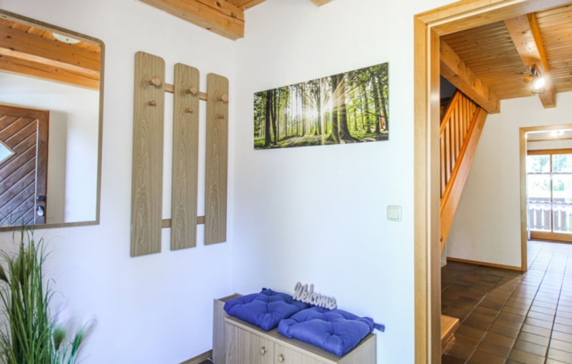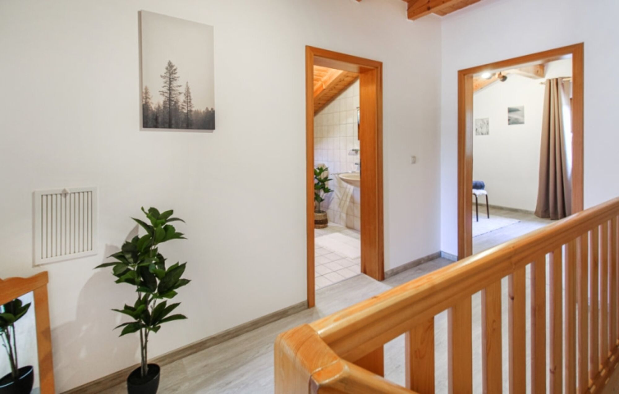 Die Räume sind hell und haben Sichtbalken, was dem Haus seine besondere Note verleiht.