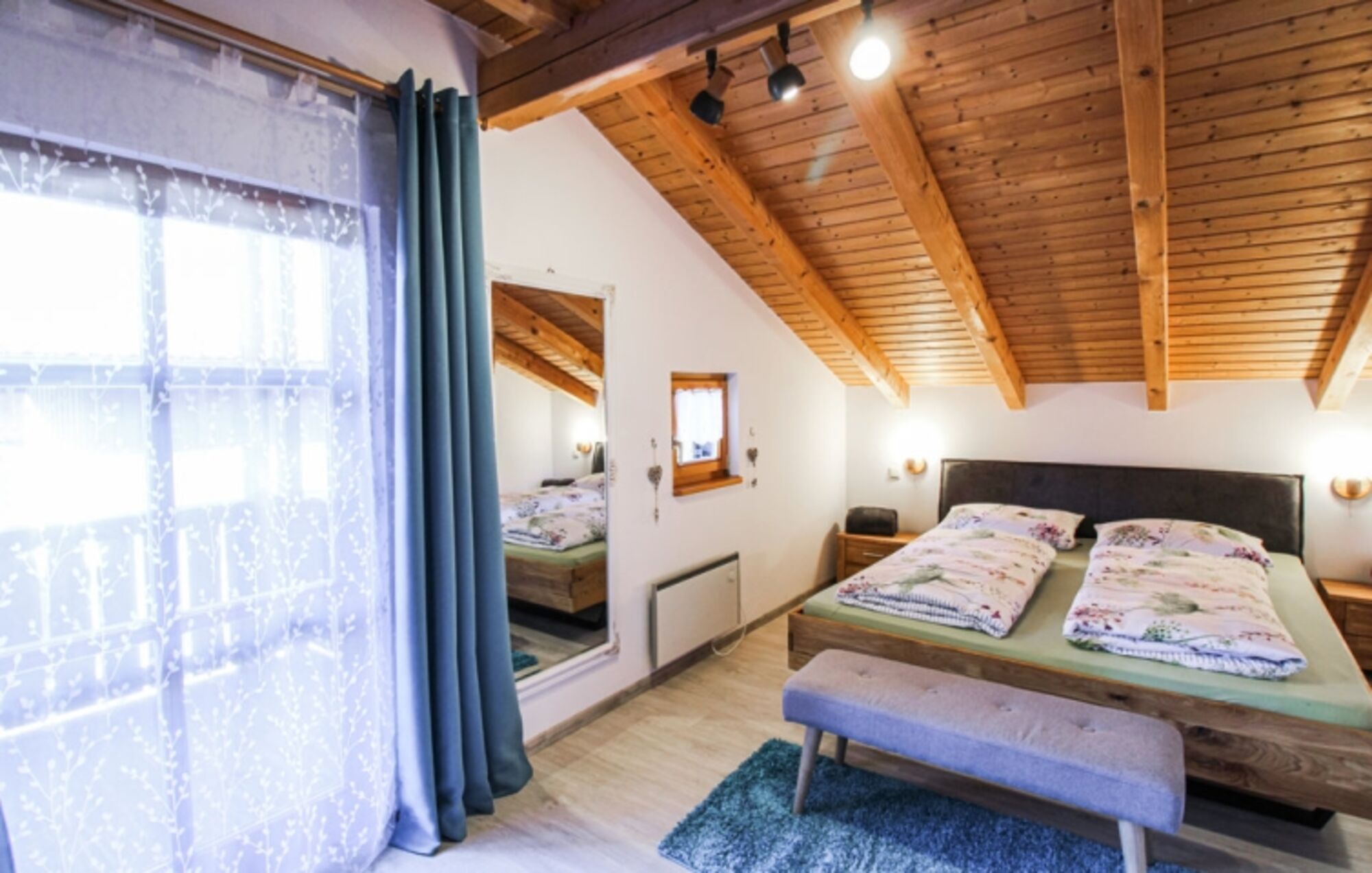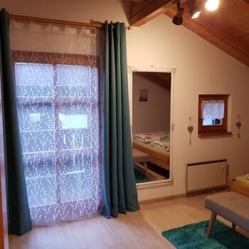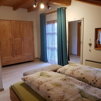 Sehr ruhig direkt am Waldrand, mit Vogelgezwitscher . Doppelbett 1,80 x 2,00m, Spiegel, Leselampe am Bett