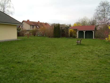 Das 1800qm große Grundstück ist voll eingezäunt. Hier können die Kinder toben.