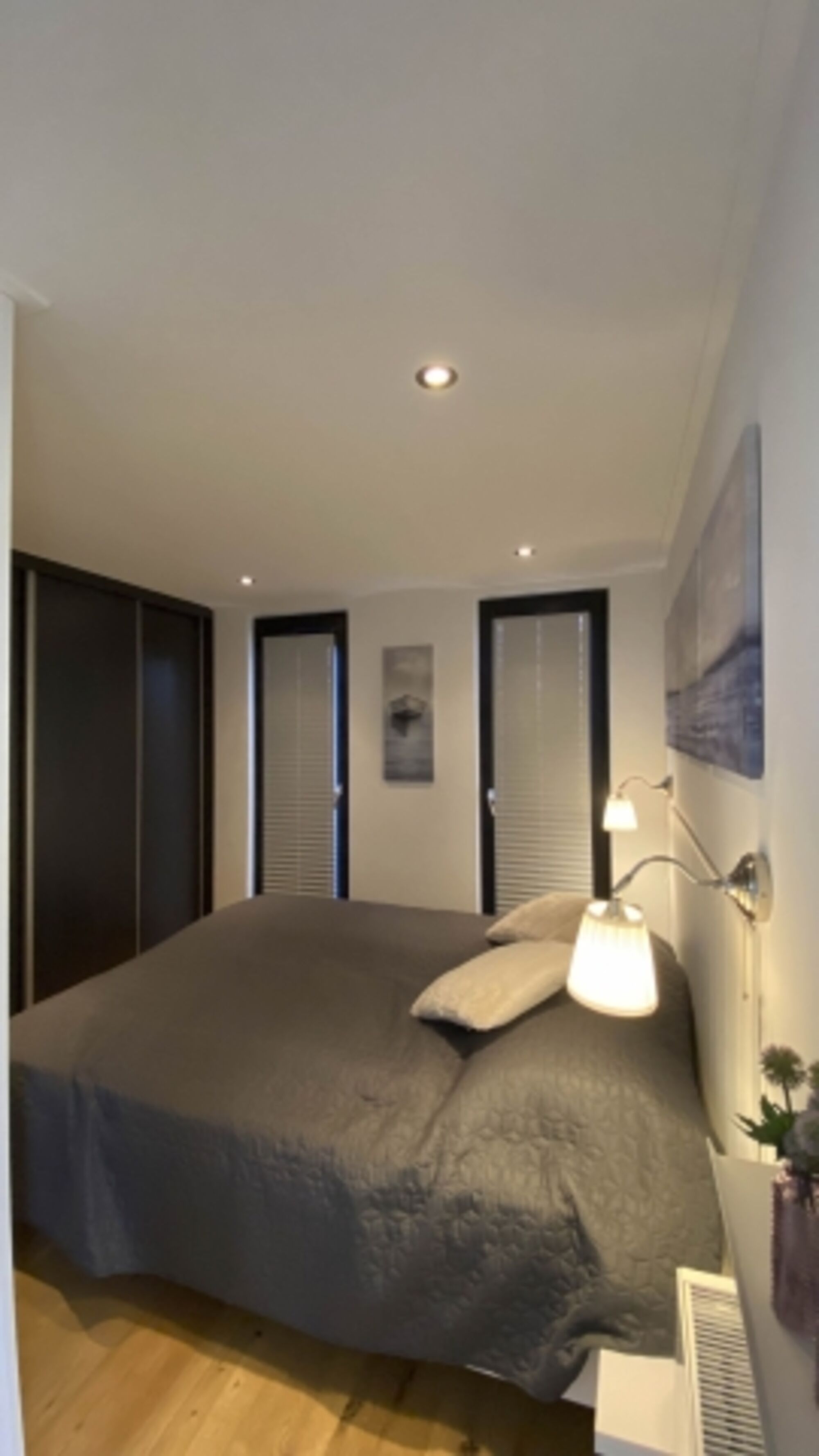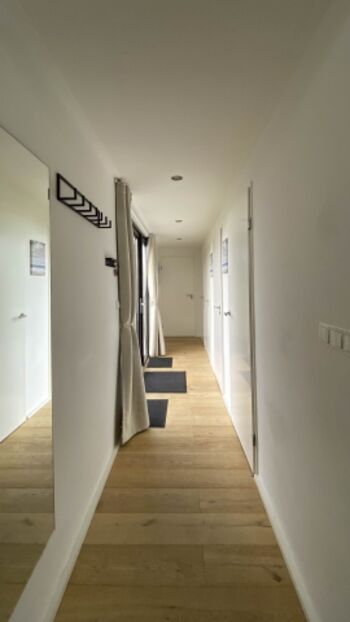 Das Chalet ist ausgestattet mit drei Schlafzimmern - eines mit Doppelbett und großem Kleiderschrank, ein zweites mit zwei Einzelbetten und ein drittes als Einzelbettzimmer. Das Badezimmer verfügt über ein Waschbecken, eine großzügige Dusche und eine Handtuchheizung - das WC ist separat.