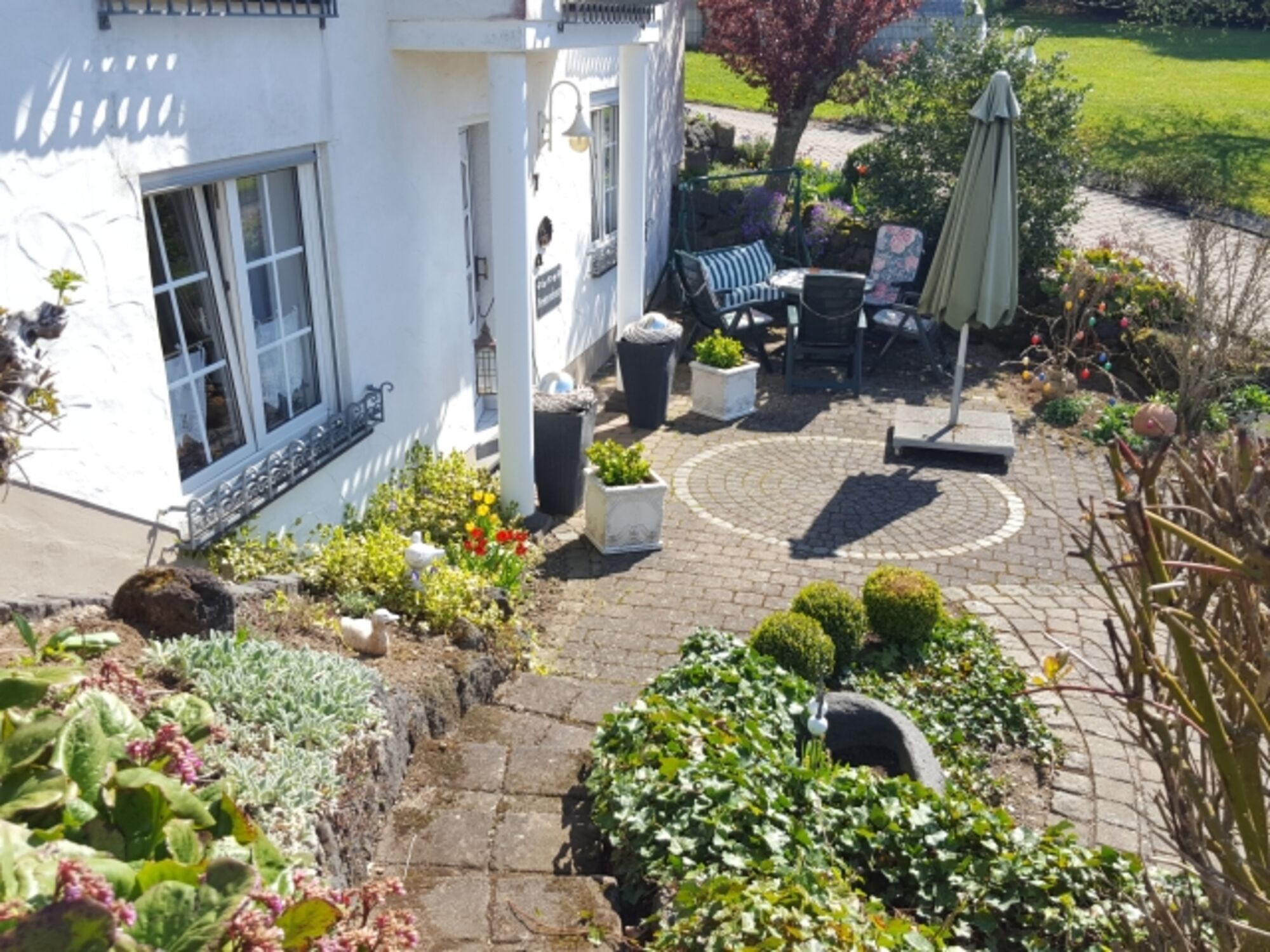 Wiese, 650 qm. lädt zum relaxen oder spielen für Sie und Ihre Lieblinge ein.