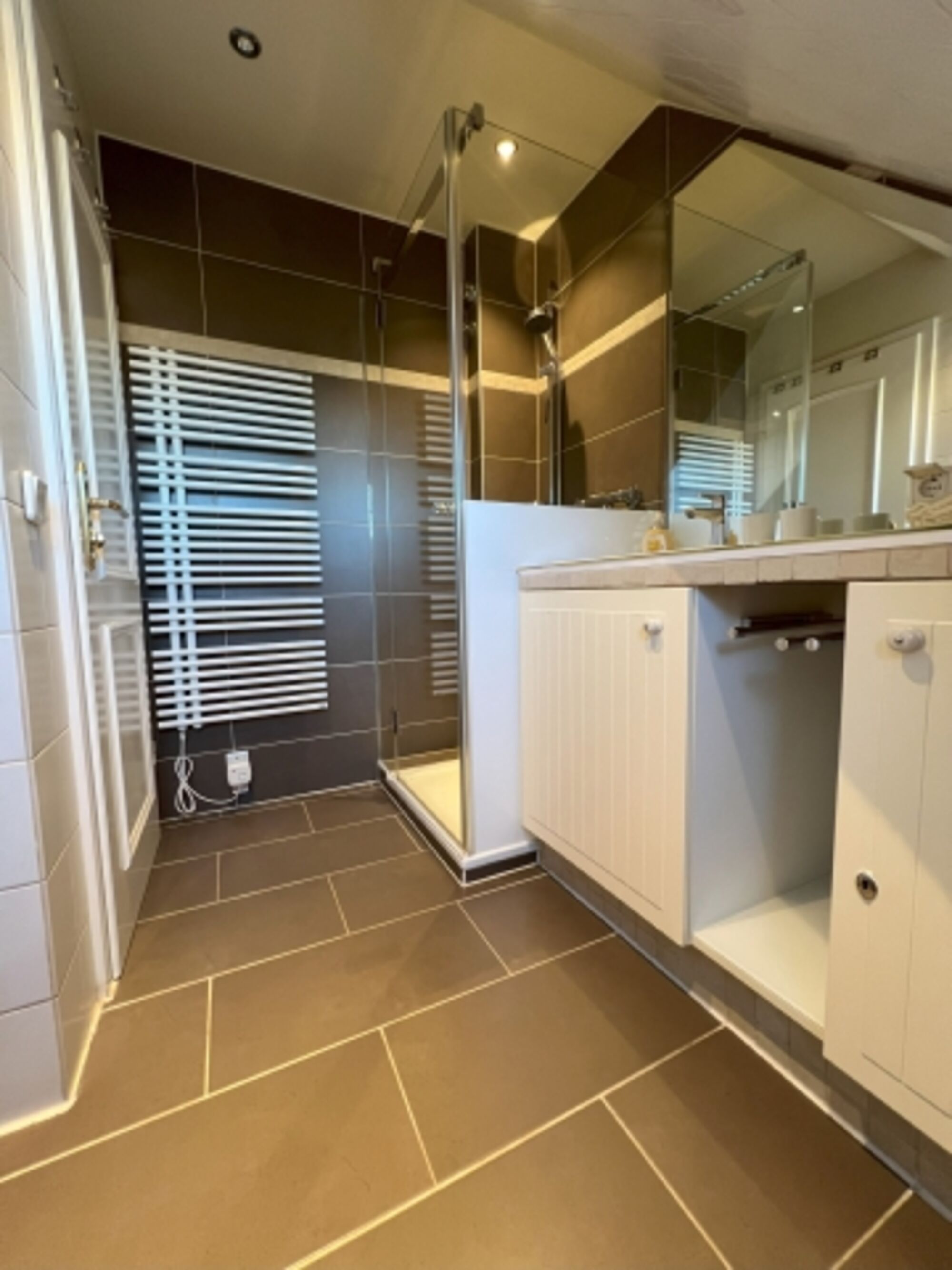 Tageslicht Duschbad, Handtuchwärmer und Fußbodenheizung. Rollladen.