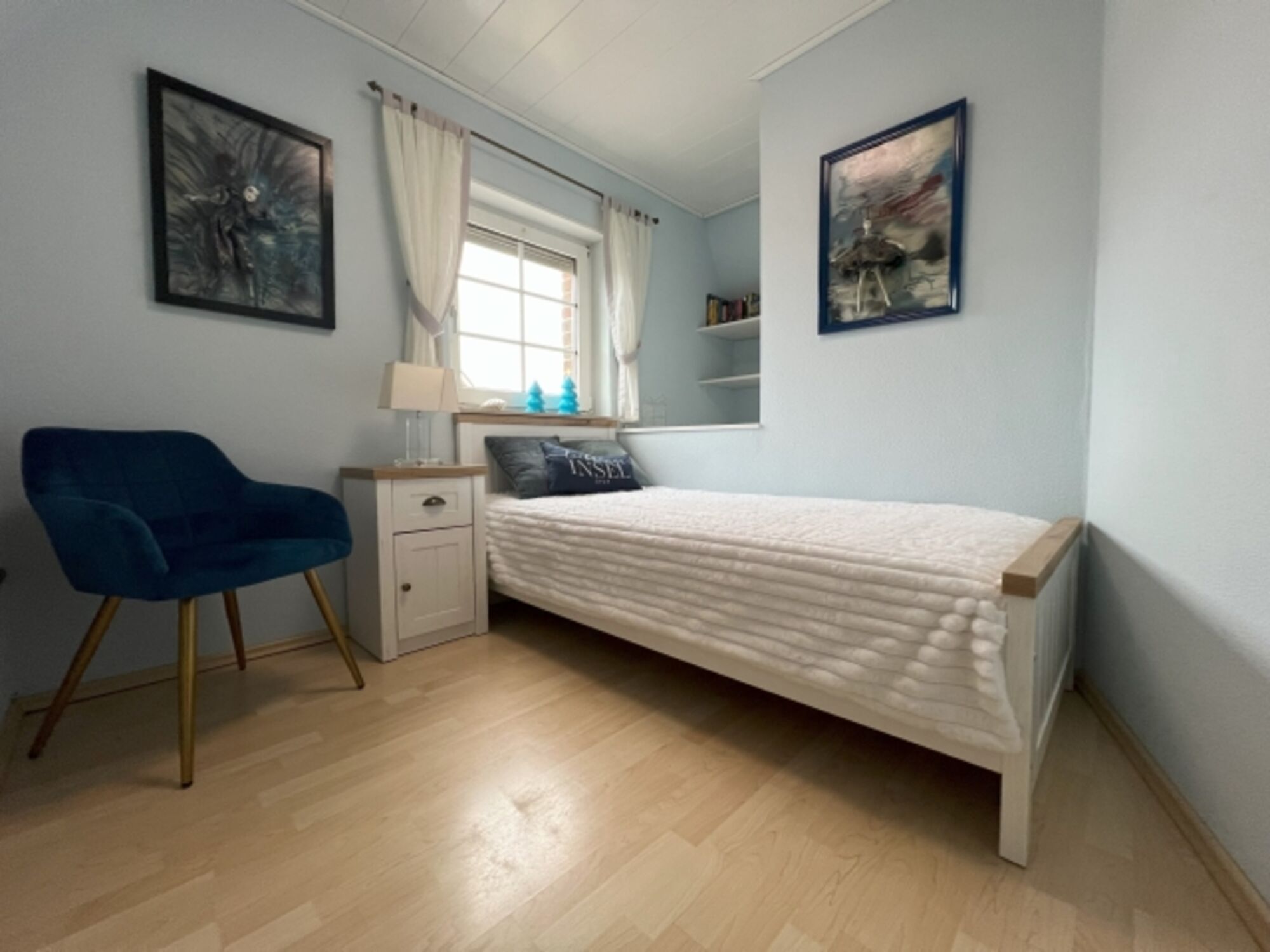 Das 2. kleine Schlafzimmer ist mit einem Einzelbett ausgestattet. Fußbodenheizung und Rollladen.