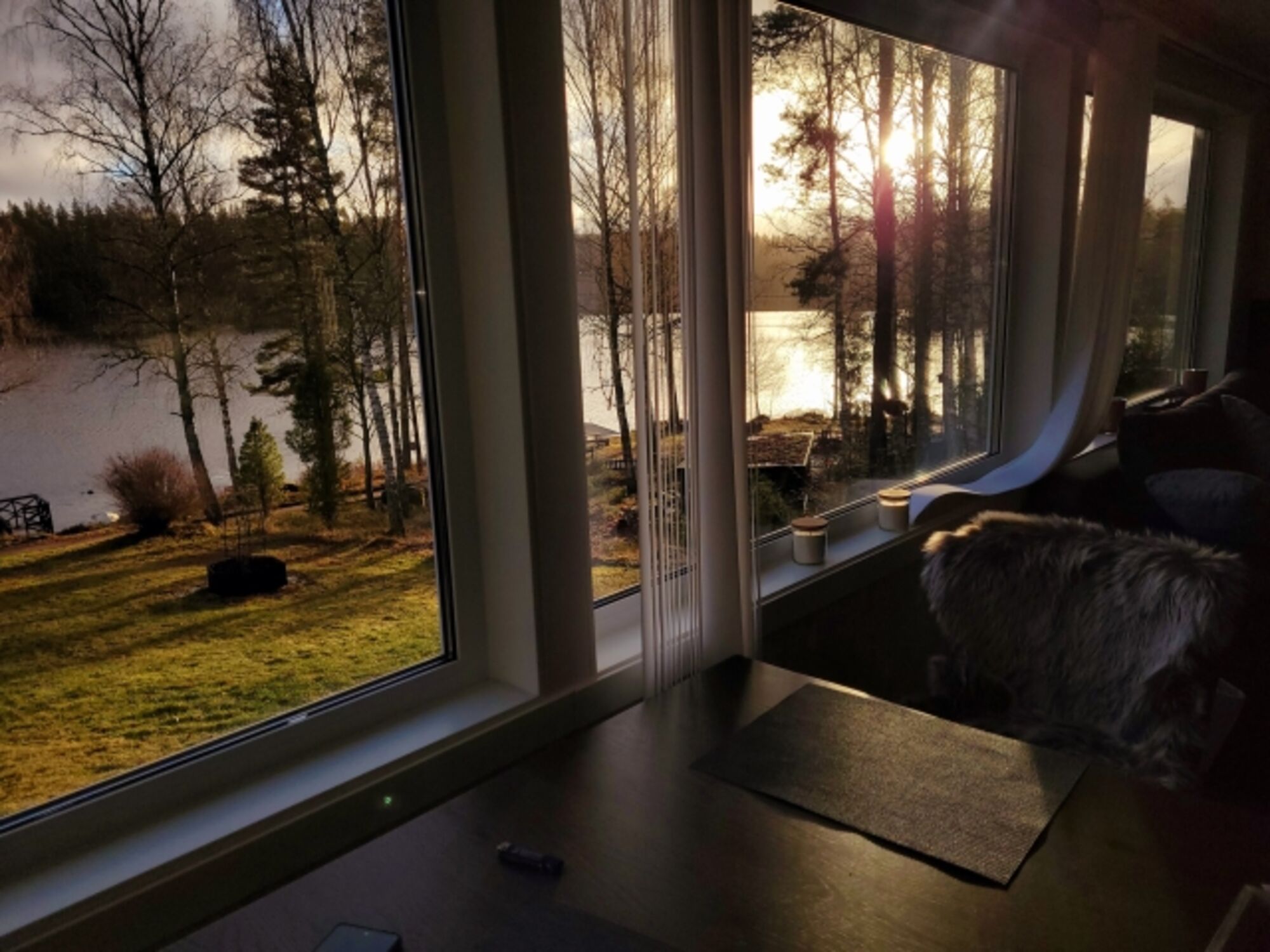 Unser Haus liegt auf einer kleinen Anhöhe und bietet durch die drei großen Panoramafenster oder unserer neu angelegten Terrasse einen herrlichen Blick auf den See und seine bezaubernden Sonnenaufgänge.