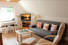 Die gemütliche Ferienwohnung 2 im Obergeschoss ist die perfekte Unterkunft für einen erholsamen Urlaub mit Ihrem geliebten Vierbeiner. Sie liegt direkt am Waldrand und bietet somit viele Möglichkeiten für Spaziergänge. Die Wohnung verfügt über ein Wohnzimmer mit Schlafcouch, Flachbildschirm mit Sat-Empfang und kostenloses WLAN. Außerdem gibt es eine Küchenzeile, ein Schlafzimmer mit Doppelbett sowie eine Dusche/WC. Im Garten befindet sich eine Sitzecke mit Strandkorb, wo Sie entspannen können. Bettwäsche und Handtücher sind im Mietpreis enthalten (Erstausstattung). Für den Hund gibt es nur wenige Schritte entfernt einen schönen Spazierweg.
