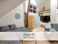 Loft Sternenblick ist unser neuester Schatz, im 1. OG des Haupthauses gelegen, aber mit eigenem Eingang. Sehr ruhig, stilvoll und geräumig, ein Schlafzimmer mit Doppelbett (160x200 cm) und ein Arbeitszimmer mit Schlafsofa (140x200) cm. Auf Wunsch mit Extramonitor und HDMI-Kabel. Zu der Wohnung gehört kein Garten, aber sobald du einen Fuß vor die Tür setzt, bist du schon fast am Strand. Nutzt trotzdem gerne das Podest oben an der Treppe zum Frühstücken oder Grillen.