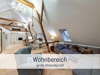 Das Wohnzimmer ist mit Esszimmer und Küche in einem sehr großen Loft zusammen.